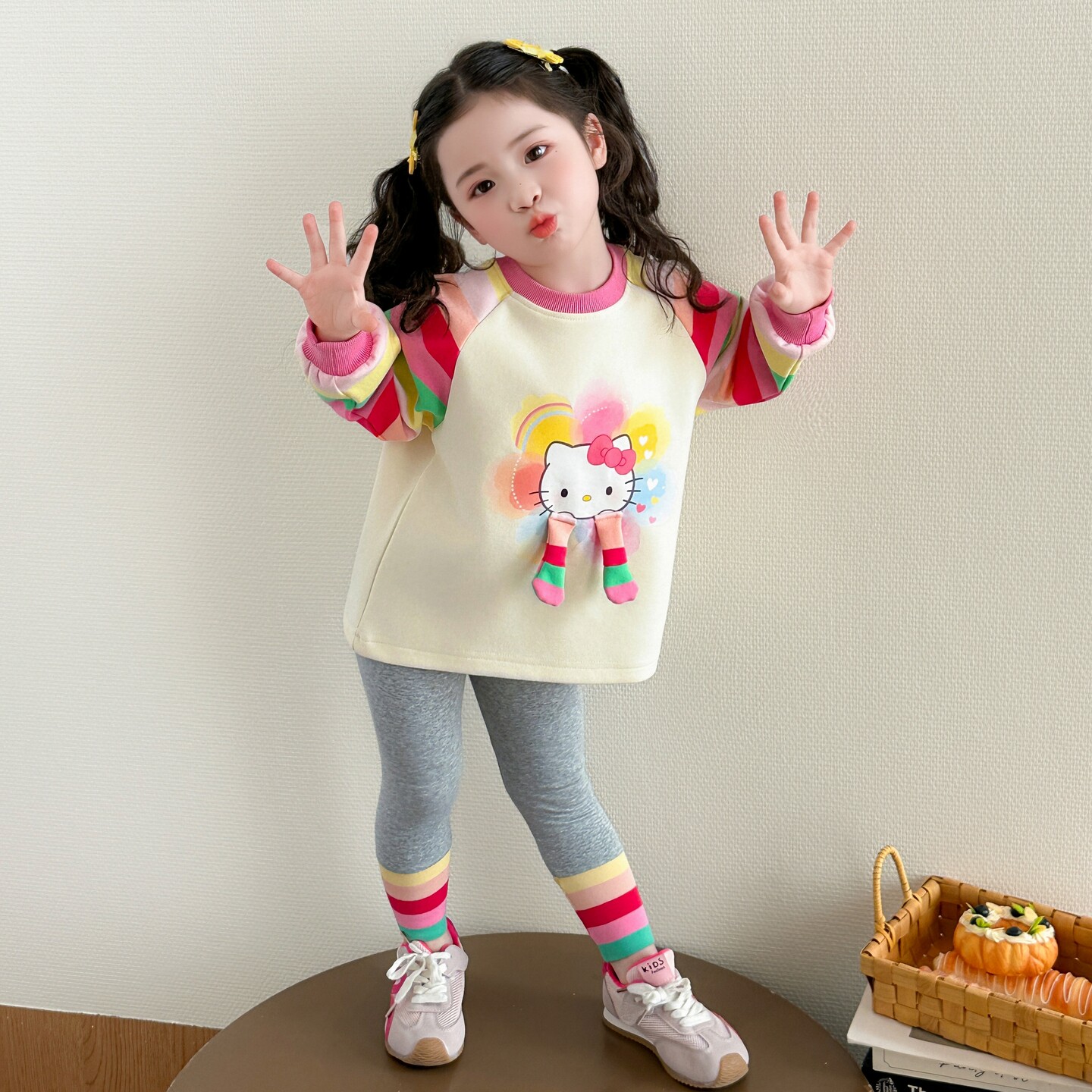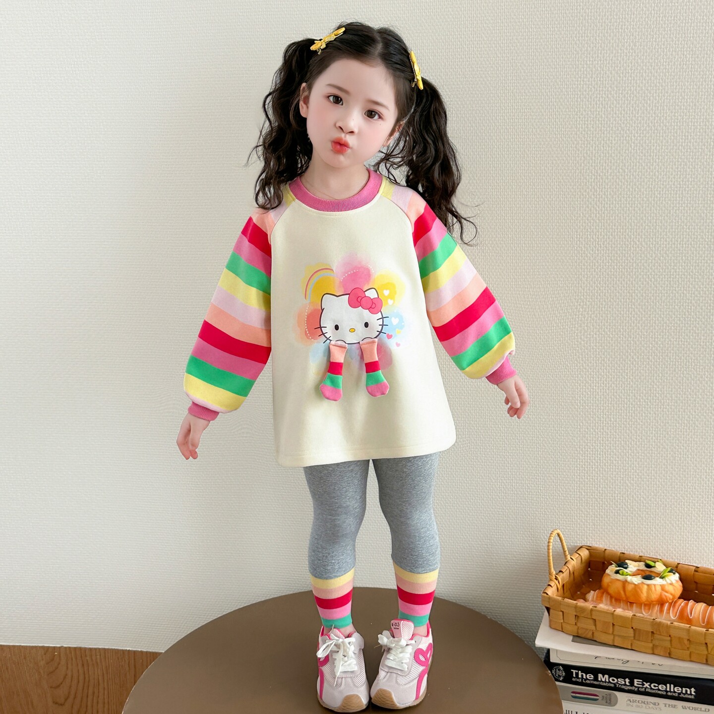 小女孩巨好看春装套装女童韩版运动卫衣两件套洋气女宝宝时髦衣服