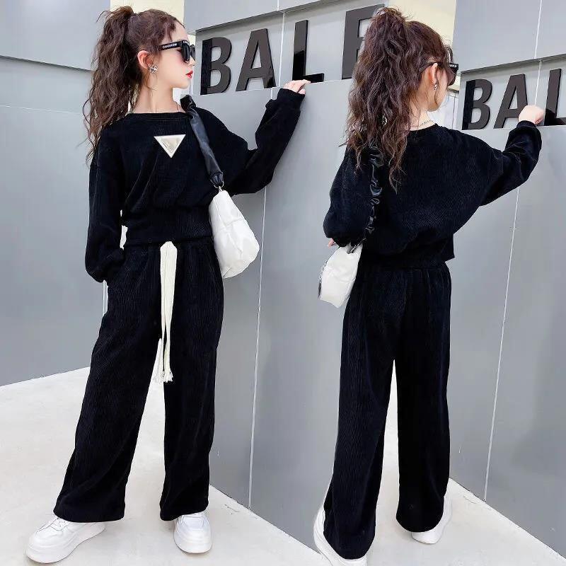 女童装套装2026春秋新款中大童洋气时髦炸街阔腿裤宽松休闲两件套