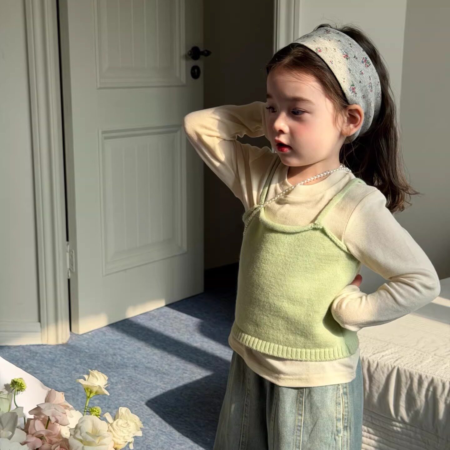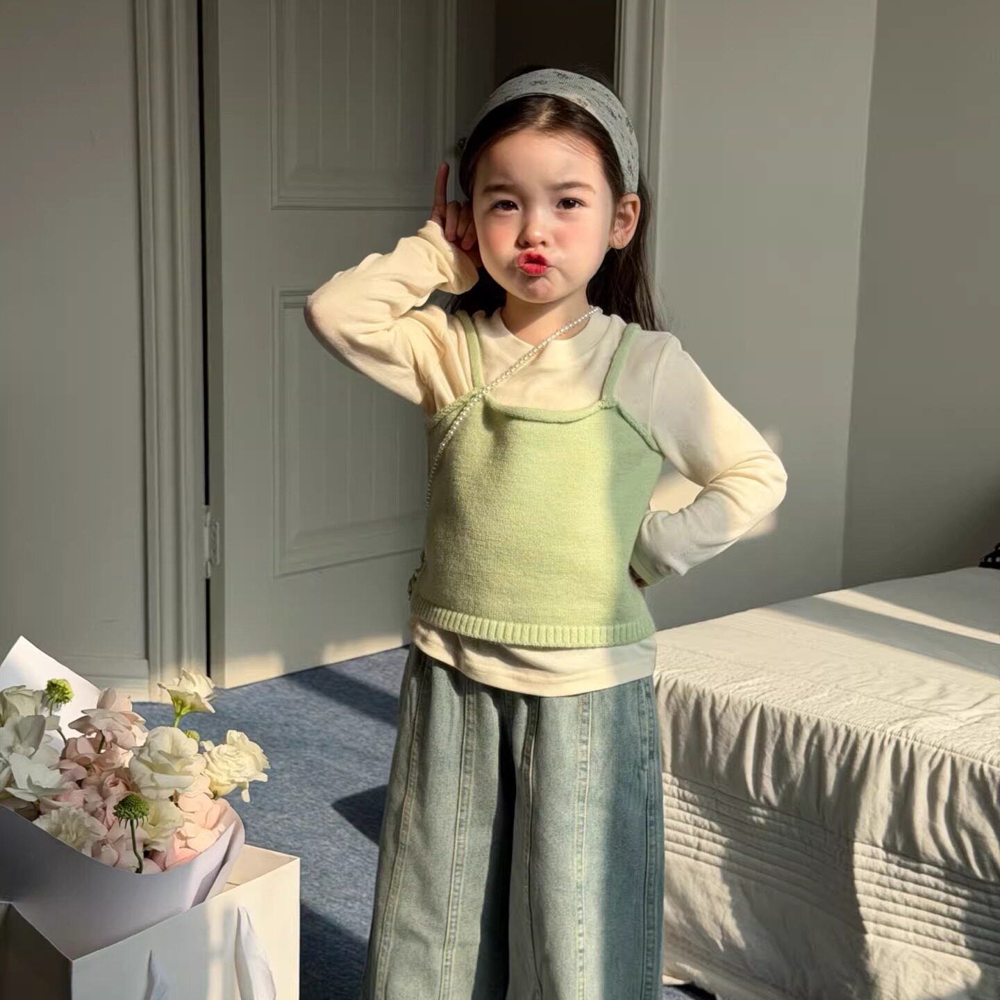 女童毛衣背心吊带2026春季新款女宝宝针织衫上衣打底衫直筒牛仔裤