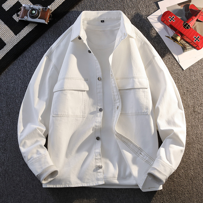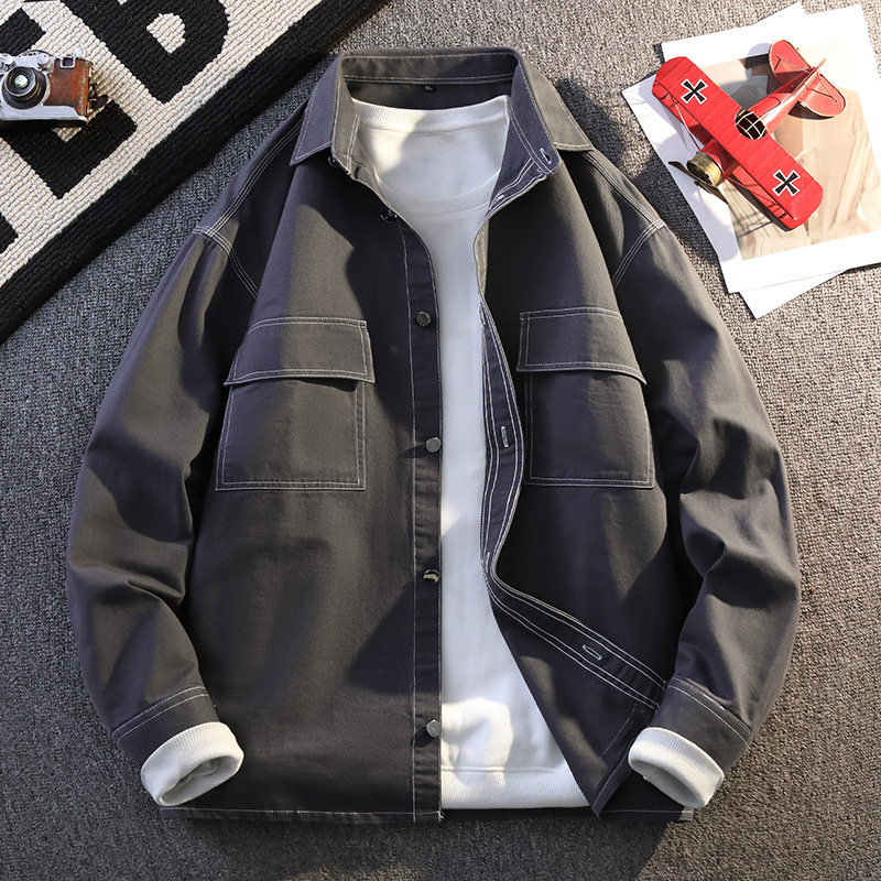 纯棉工装外套男款春秋季2026长袖衬衫翻领宽松上衣春装夹克寸衣服