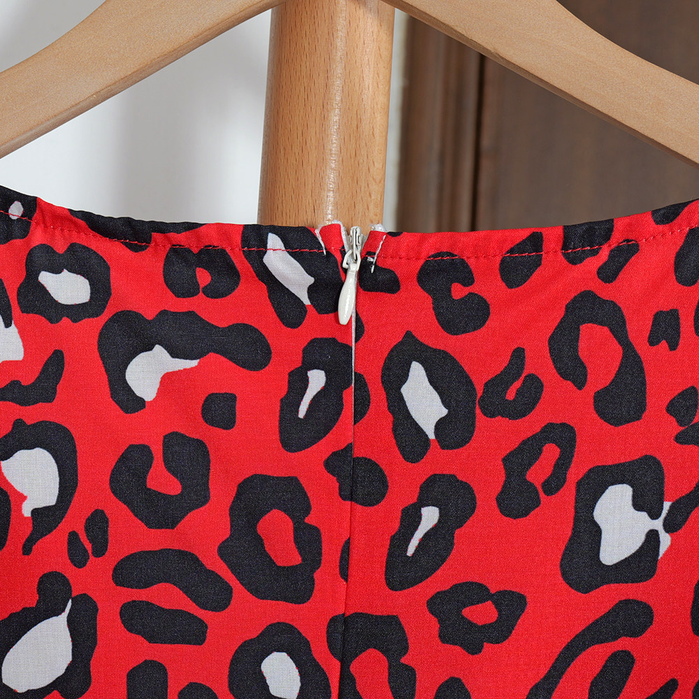 2026夏季法式豹纹V领短袖连衣裙女修身A字裙小个子红色中长裙潮流
