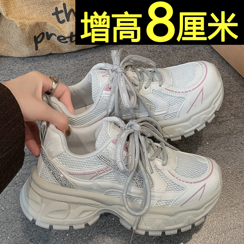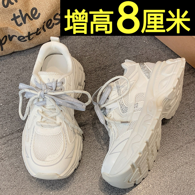 老爹鞋女款2026新款夏季百搭内增高休闲运动鞋网面透气厚底小白鞋