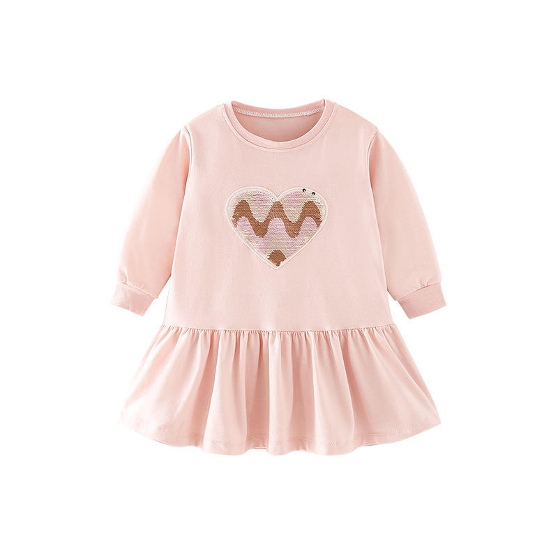 秋冬新款女童卫衣打底连衣裙亮片爱心儿童裙子小女孩宝宝纯棉秋装