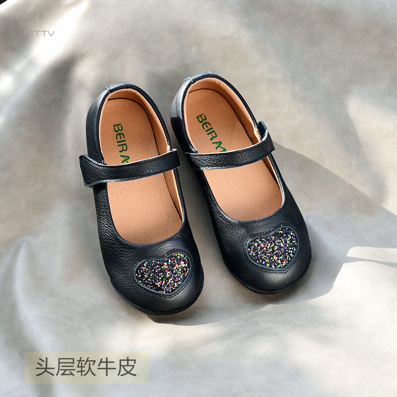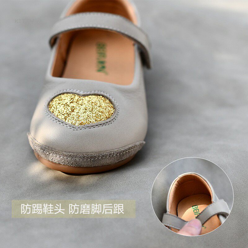 女童韩版真皮鞋休闲公主鞋爱心亮片女宝宝软皮软底春秋款牛皮单鞋