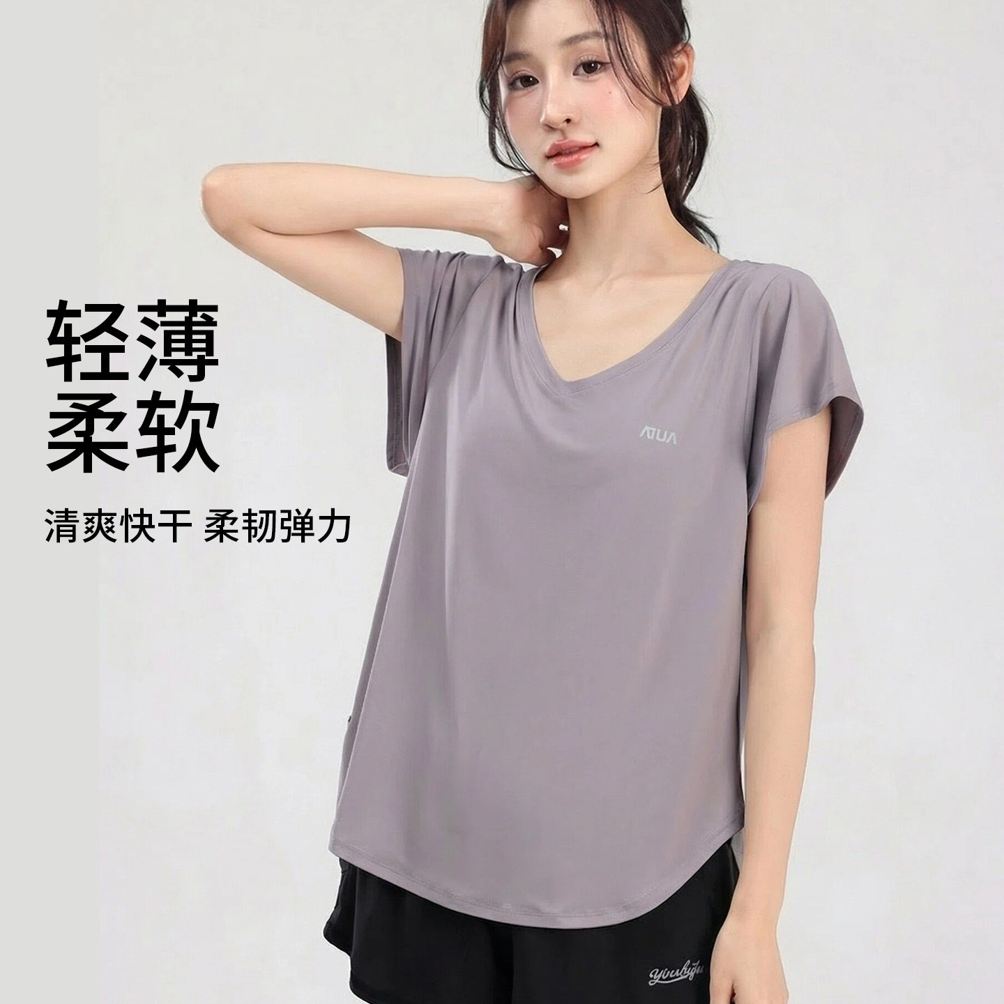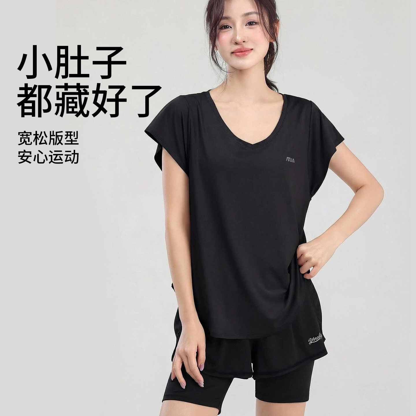ATUA亚图亚大码运动短袖罩衫女胖mm速干跑步上衣显瘦瑜伽T恤200斤
