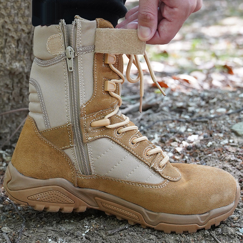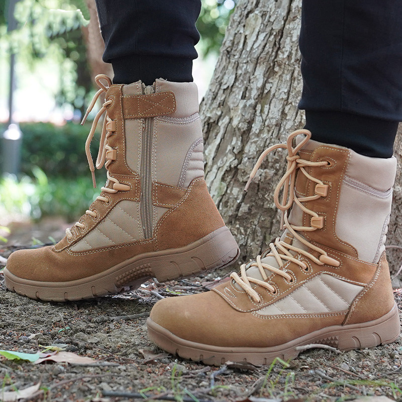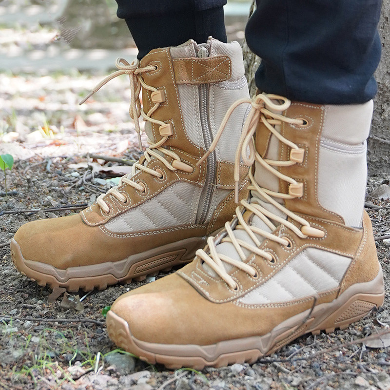 新店上新夏季透气高帮作战靴拉链工装战术沙漠靴陆战作训练登山靴