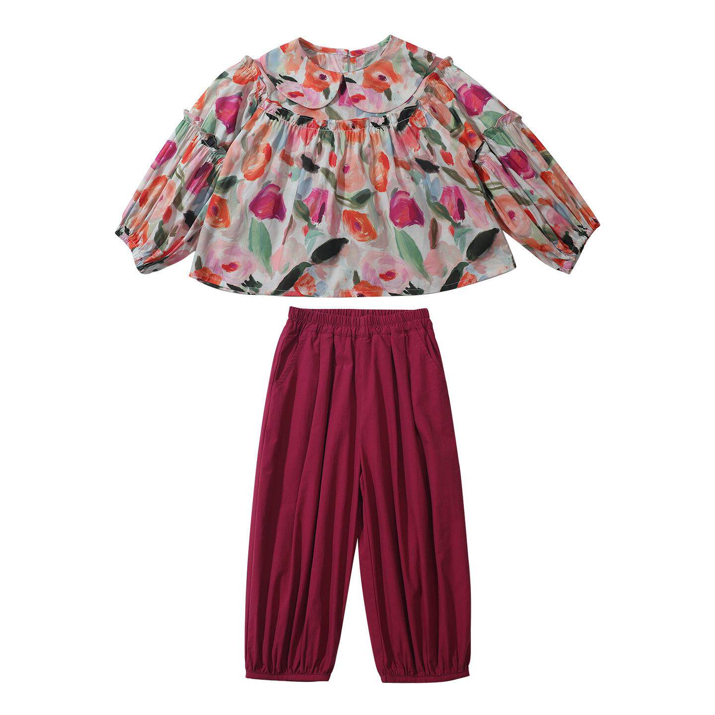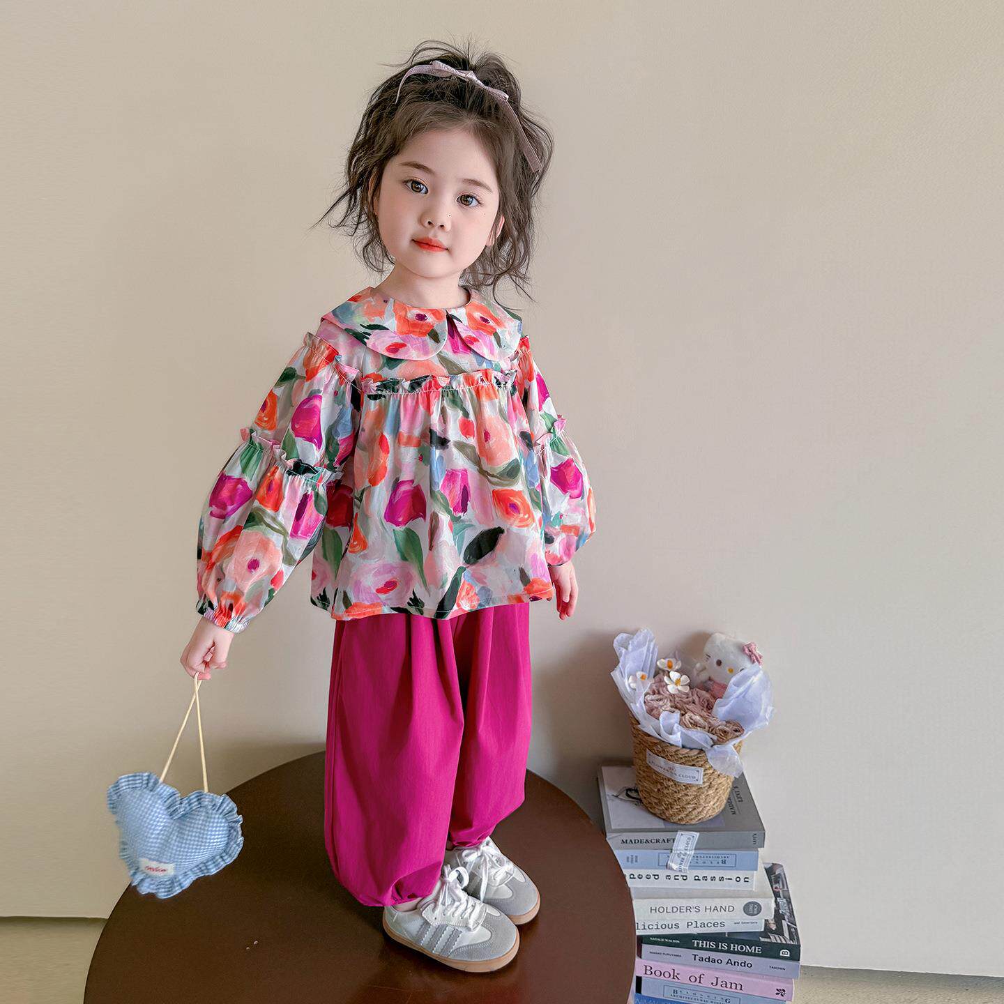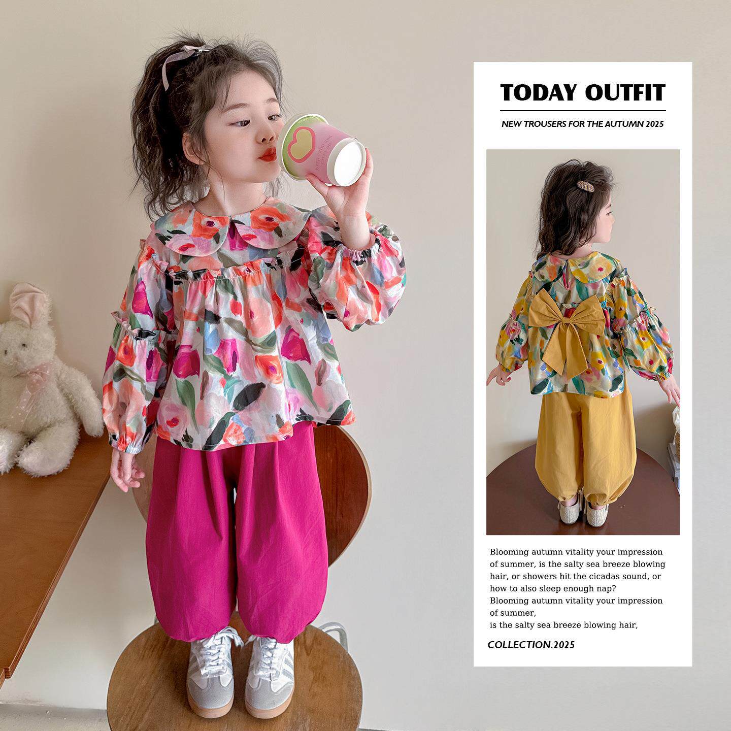 女童蝴蝶结花朵套装春秋款儿童韩版时尚小女孩洋气两件套小童春装