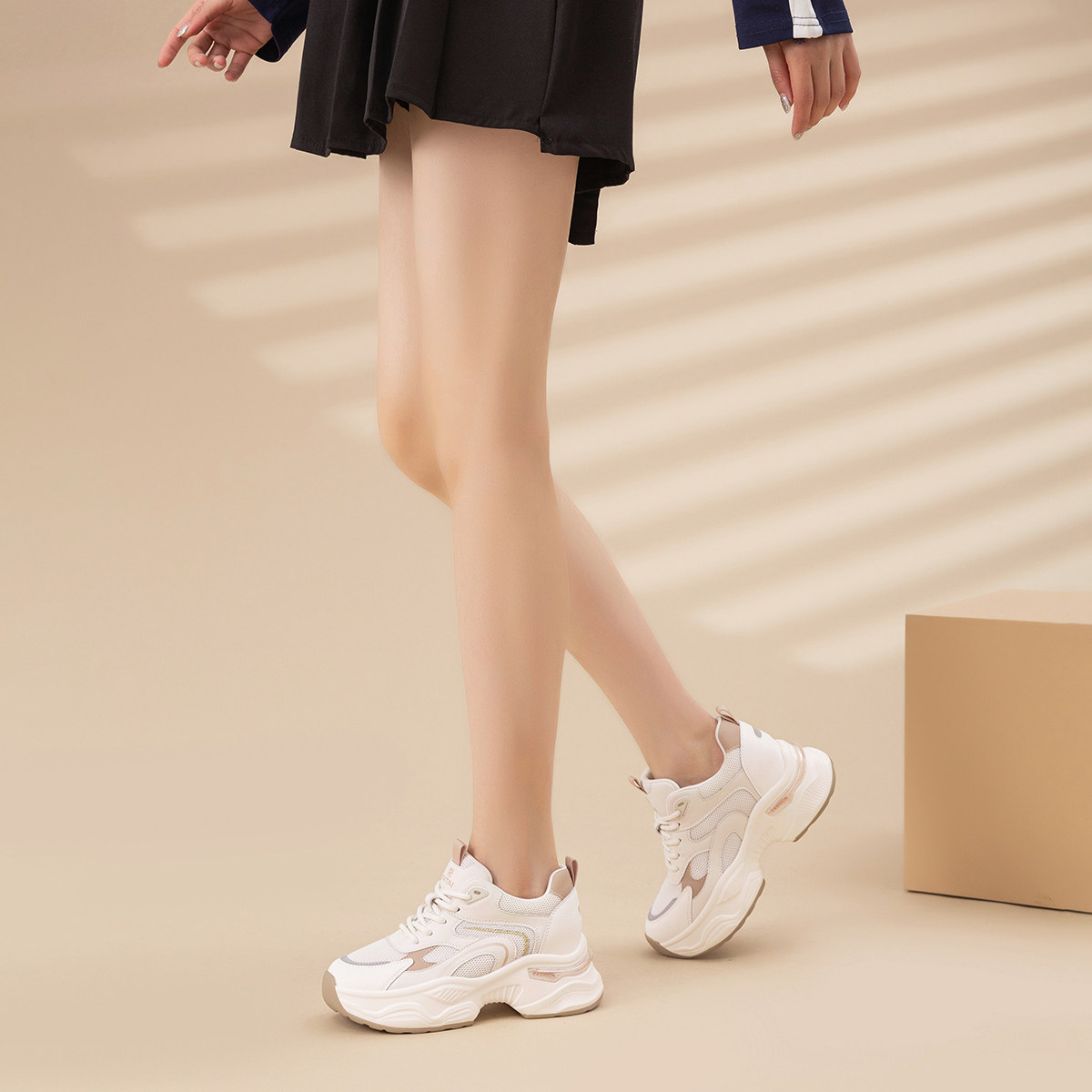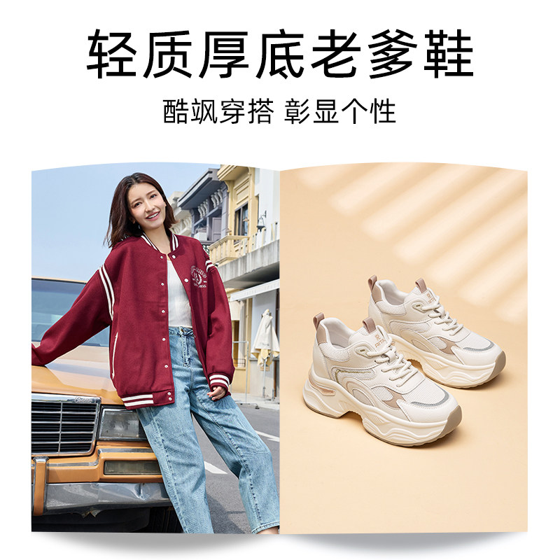 日泰厚底老爹鞋女春季新款百搭透气网面鞋女小个子增高运动休闲鞋