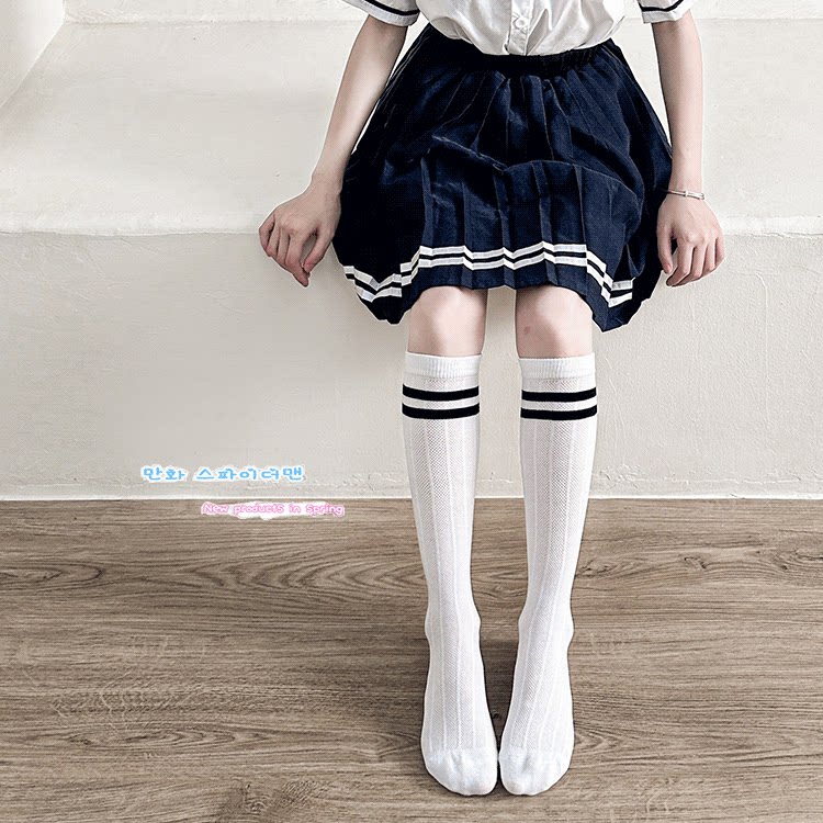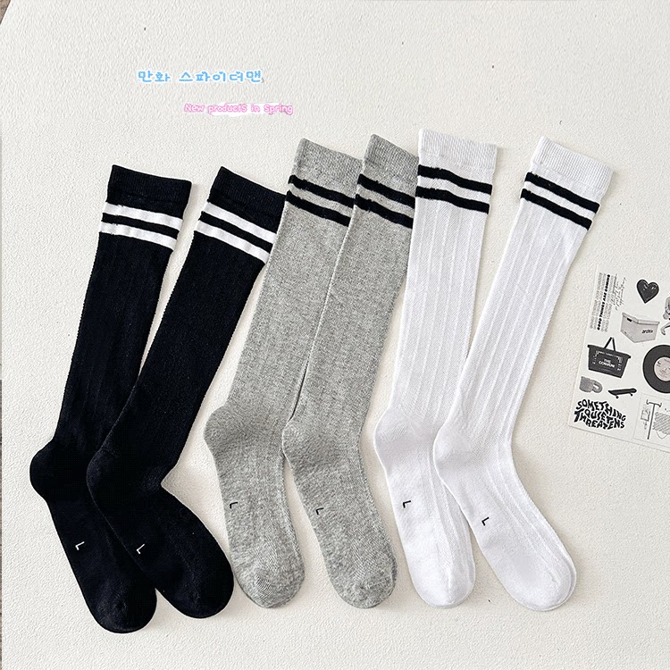 儿童长筒袜纯棉夏季网眼薄款黑白学生足球夏天袜子男童女童中筒袜