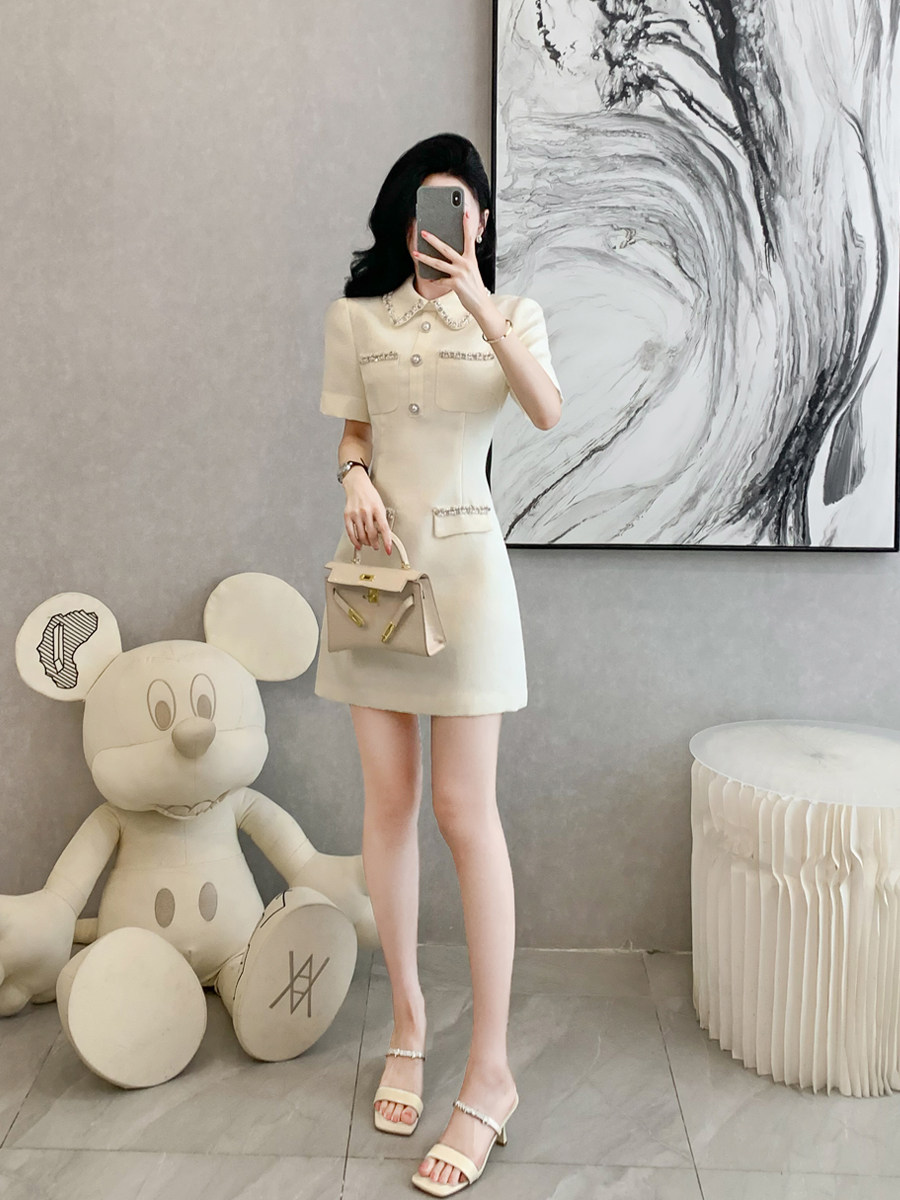 小众设计感连衣裙女夏季新款高级感小个子气质时尚白色小香风裙子