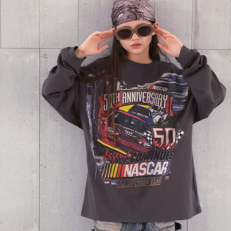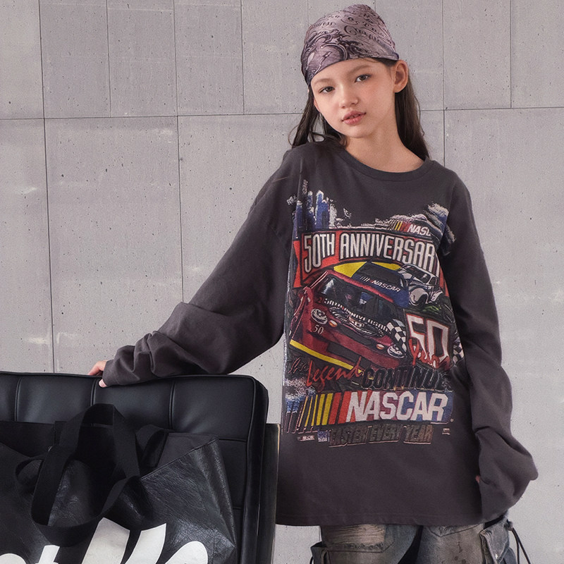 冷大娘 春夏男女儿童爵士街舞纯棉长袖T恤印花休闲宽松上衣亲子款