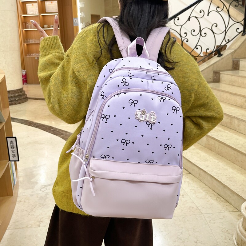 书包女小学生2025新款女生耐脏黑色背包初中生大容量高颜值双肩包