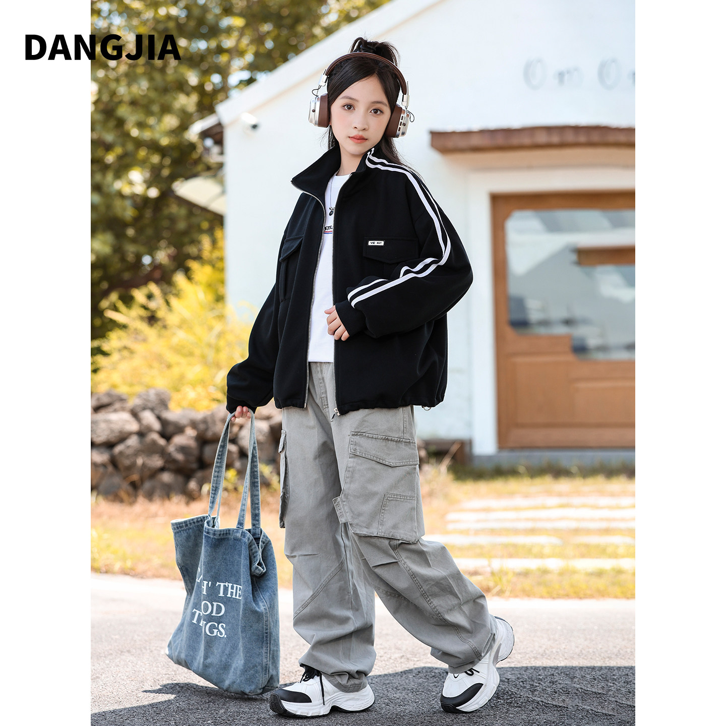 女大童2026新款夹克外套春秋美式青少年女孩初中生薄款上衣运动装