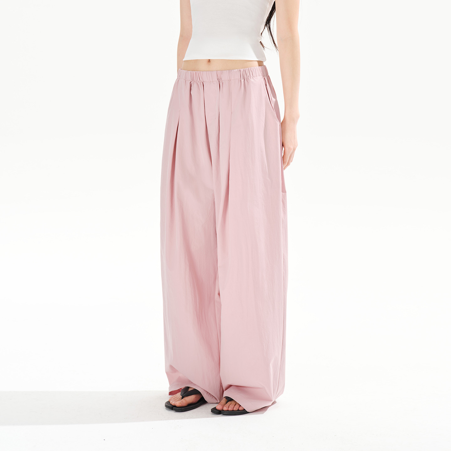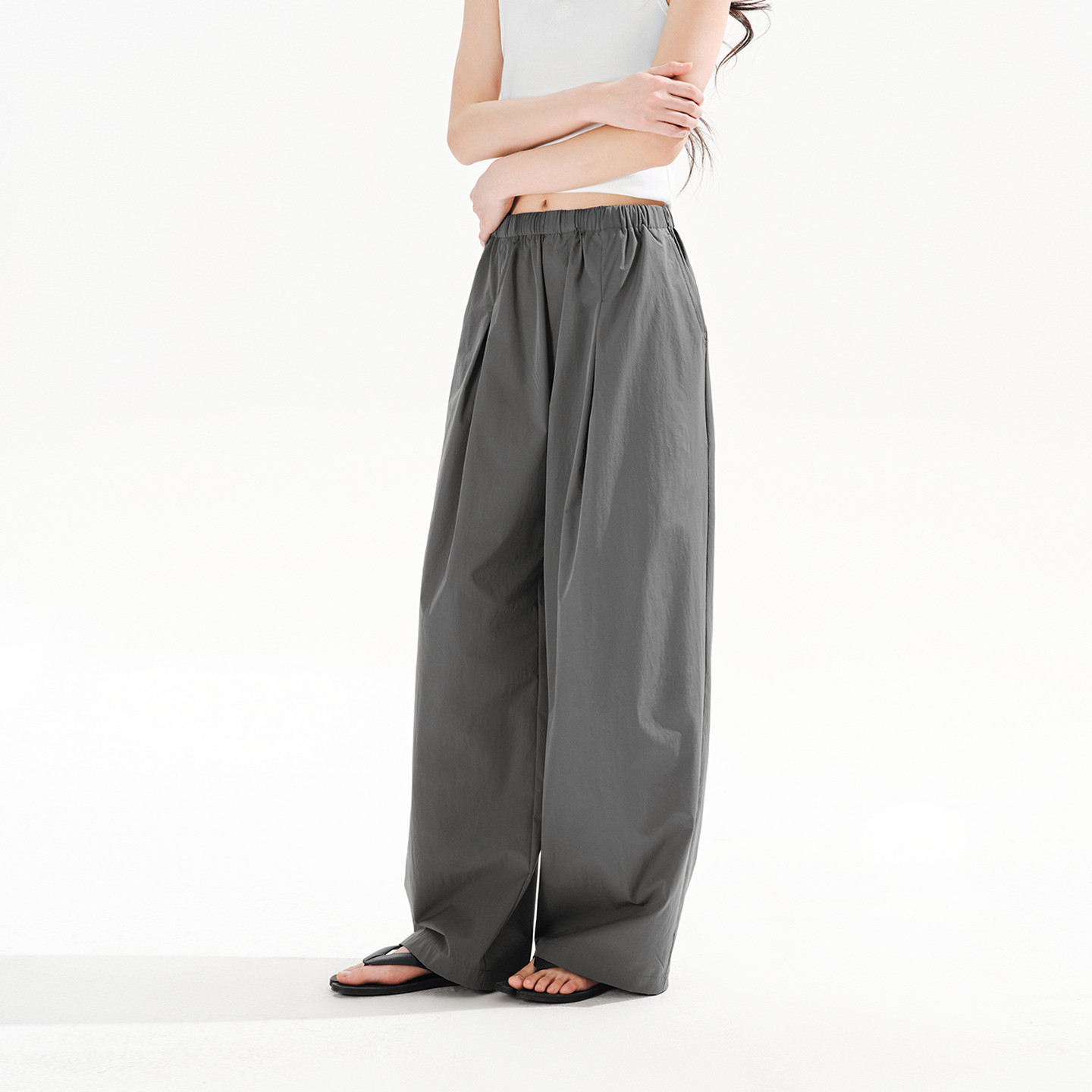 PSO Brand女装薄款宽松直筒风衣裤子女款垂感阔腿拖地长裤春季
