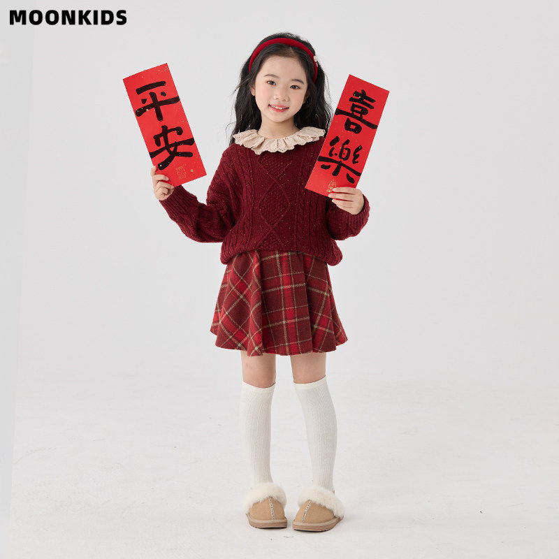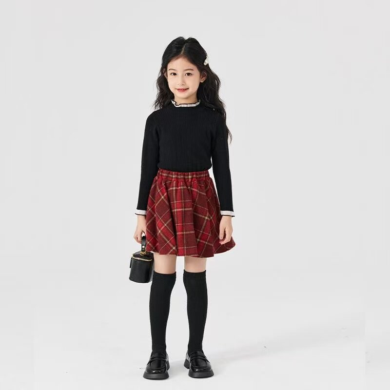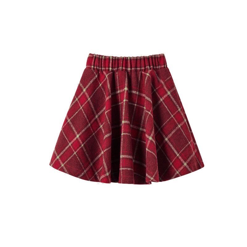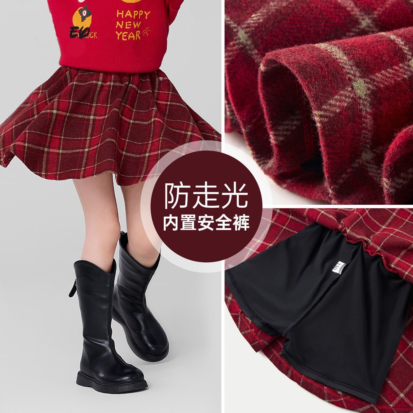 女童裙子红色格子半身短裙2026秋冬新年儿童过年衣服加厚春装裙裤