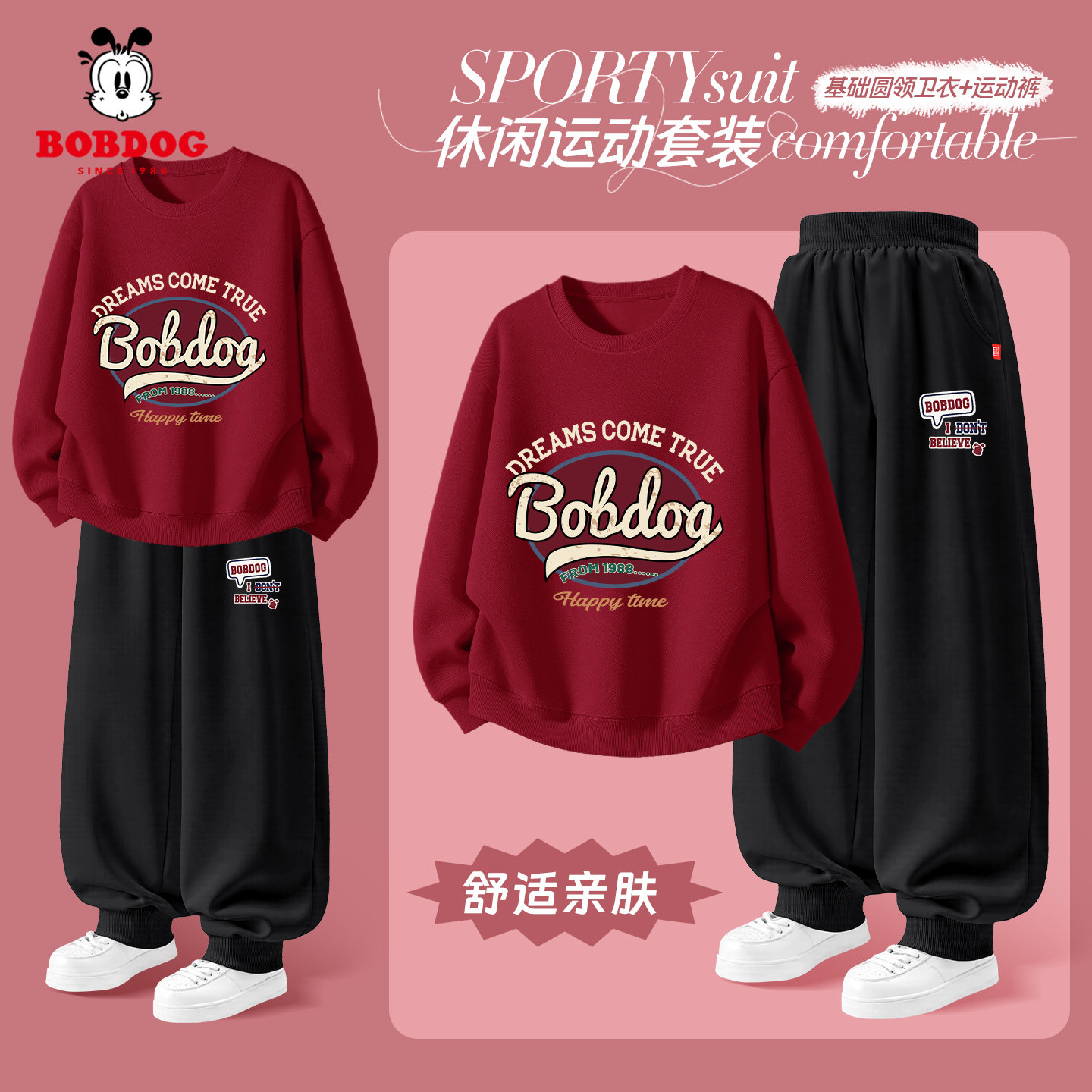 巴布豆男童春装套装中大童帅气时髦春季两件套2026新款儿童运动服