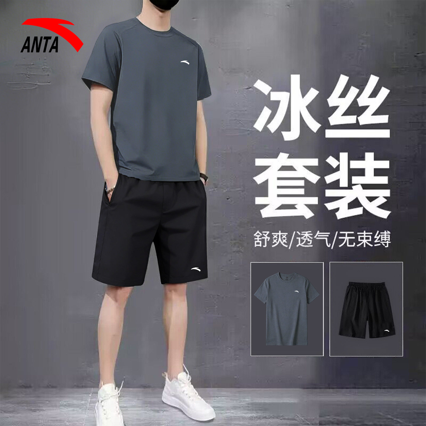 安踏运动套装男士跑步速干衣2026夏季冰丝短袖短裤T恤健身训练服