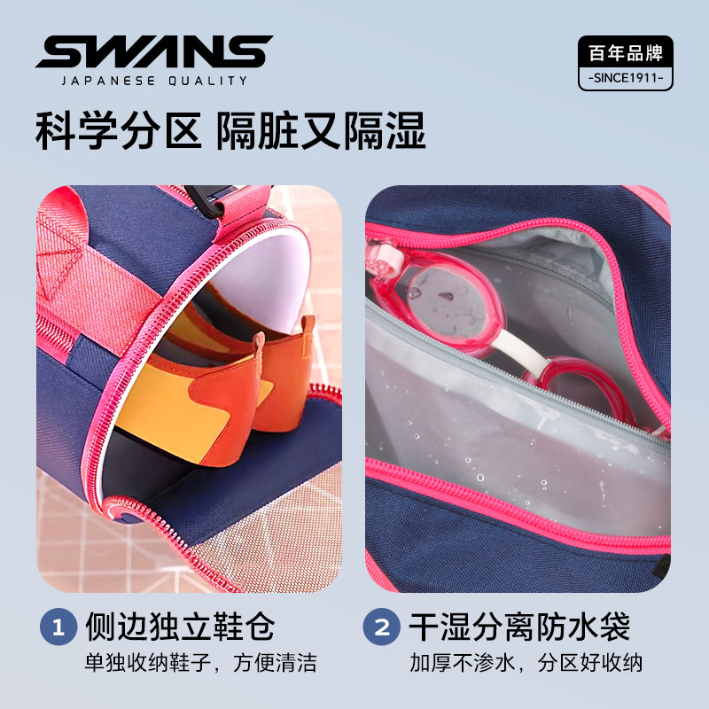 swans儿童游泳包干湿分离收纳大容量防水男女童游泳训练专用装备