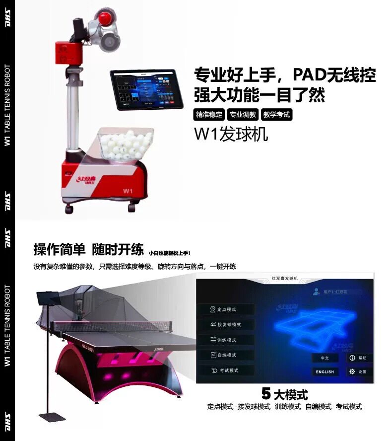 红双喜W1专业自动乒乓球发球机教学考试PAD无线调教落地训练器
