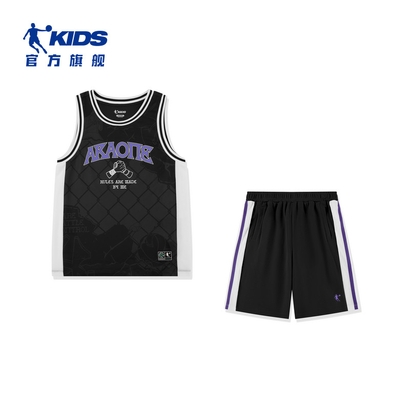 乔丹童装男童篮球套装2025年夏新款大童速干衣服运动服团购篮球服