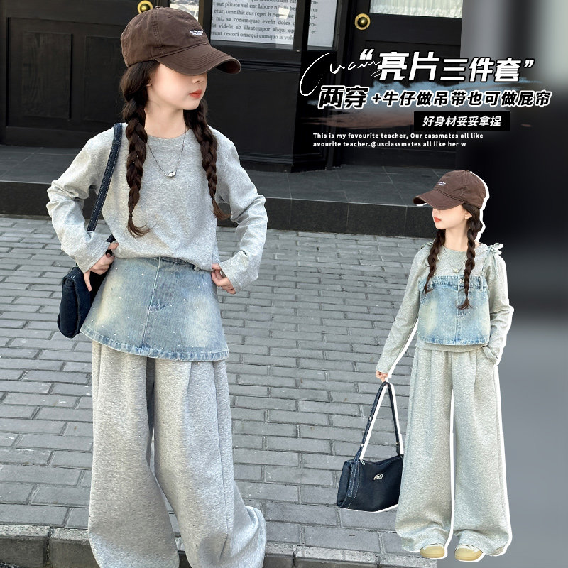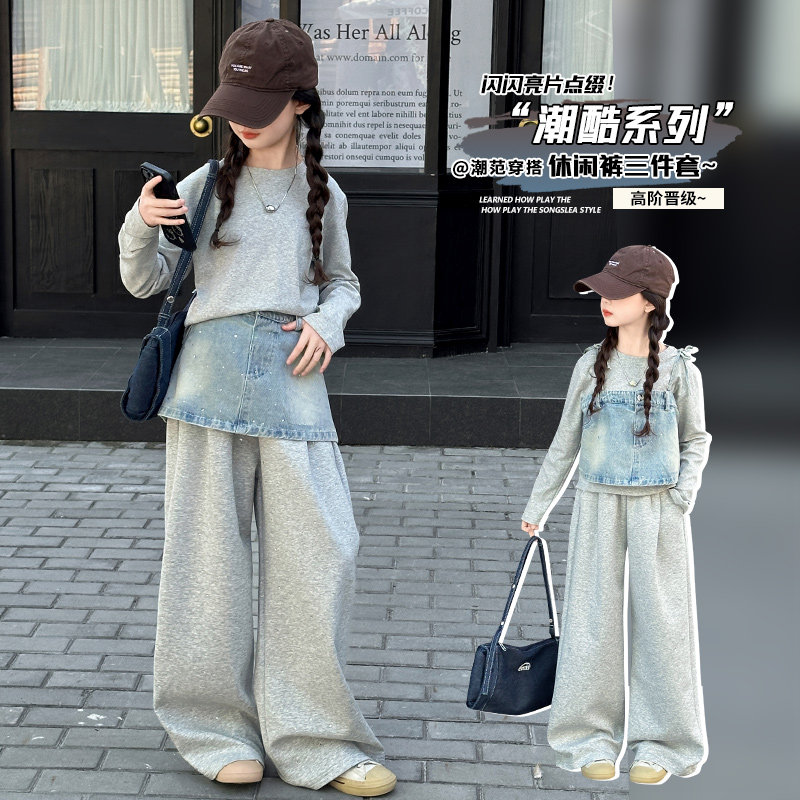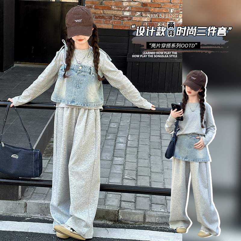 女童运动服套装春季新款小女孩纯棉韩版休闲三件套爆款中大童装潮