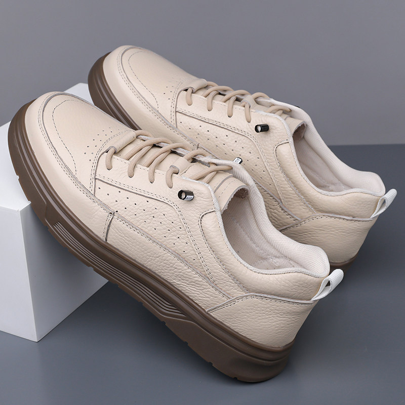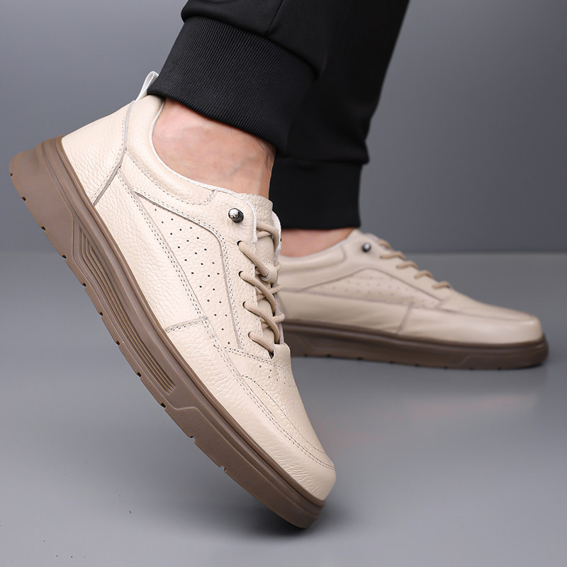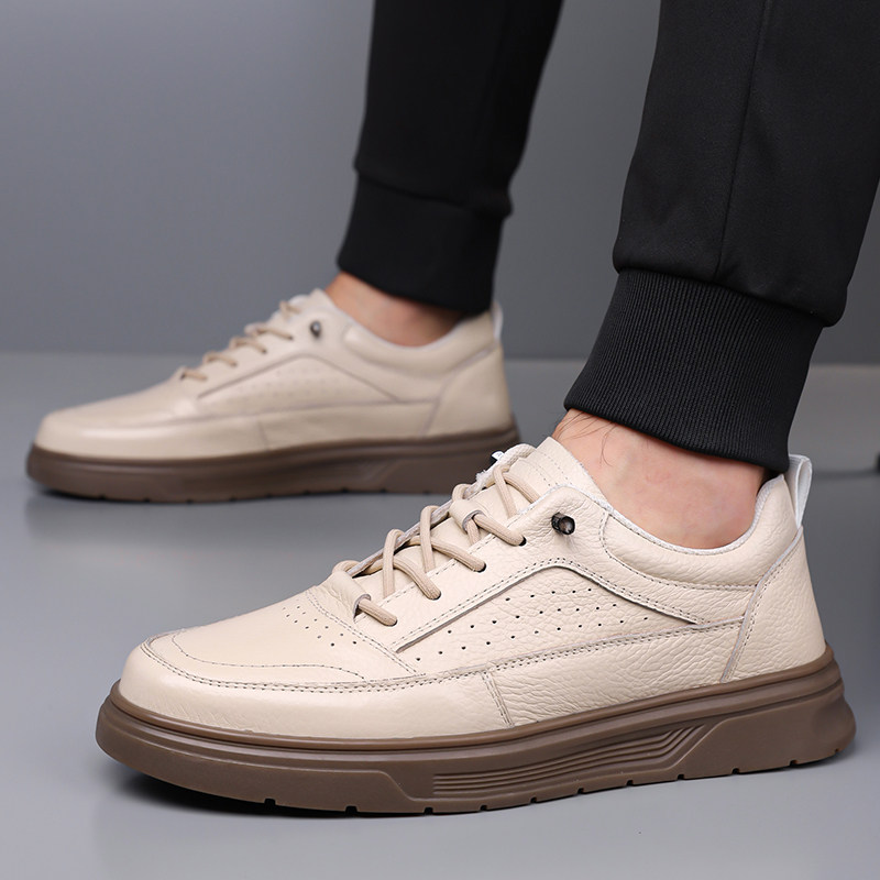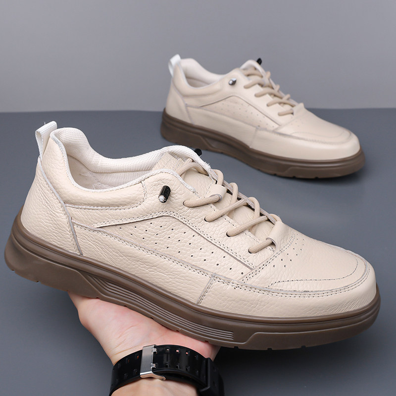 头层牛皮鞋男2026夏新款透气厚底牛筋底增高打孔懒人鞋一脚蹬鞋子
