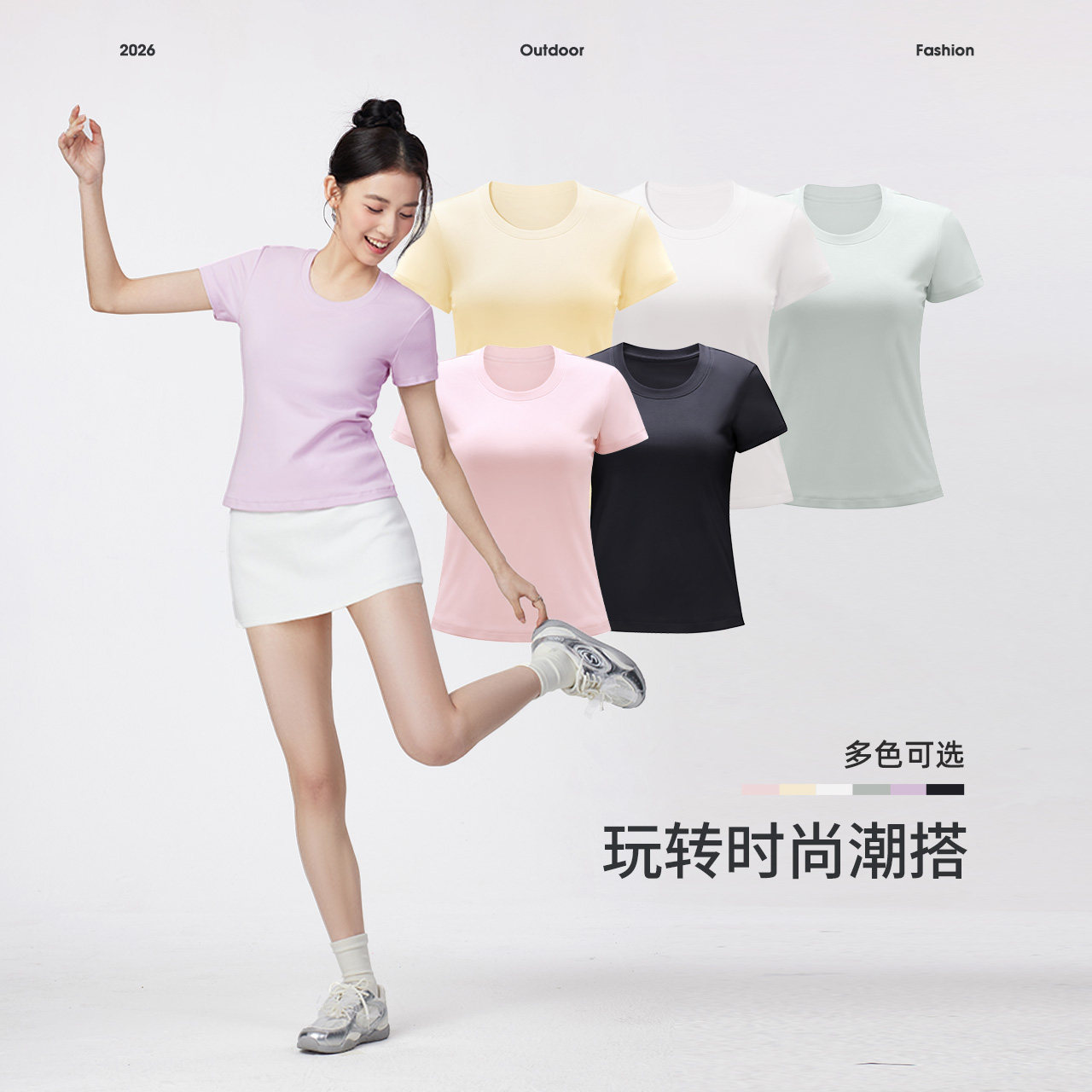 骆驼女装圆领短袖T恤2026夏季新款百搭透气打底正肩棉T休闲上衣女