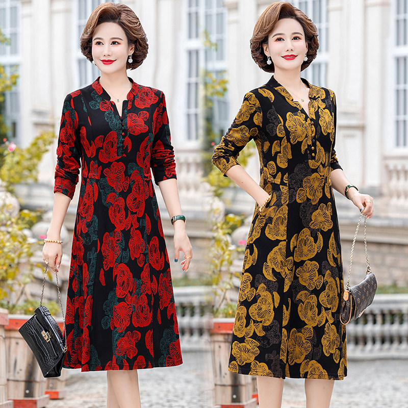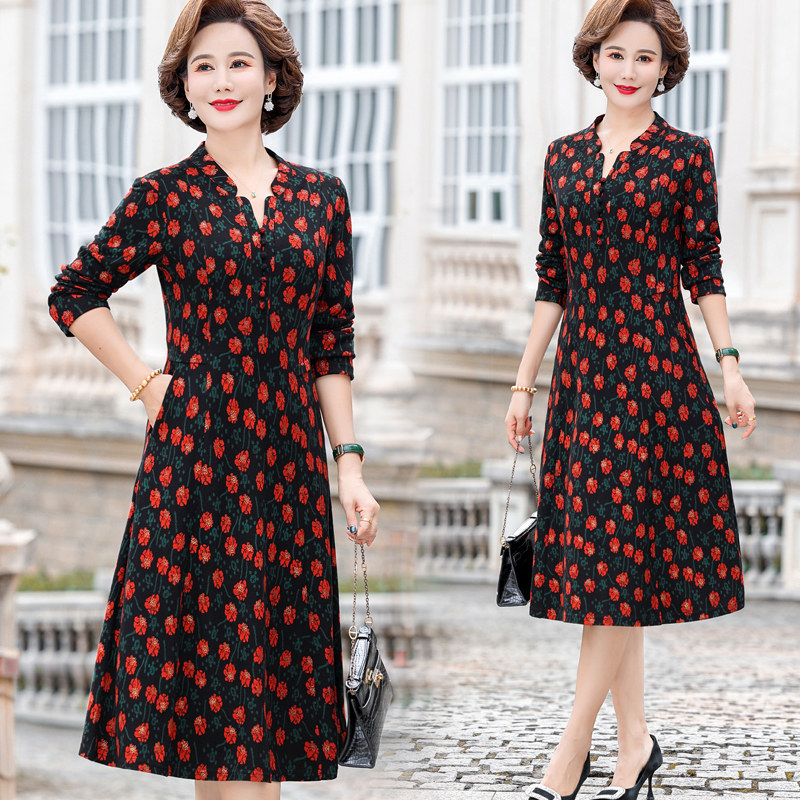 中老年妈妈春装气质长袖连衣裙2026新款中年女士碎花洋气时尚裙子