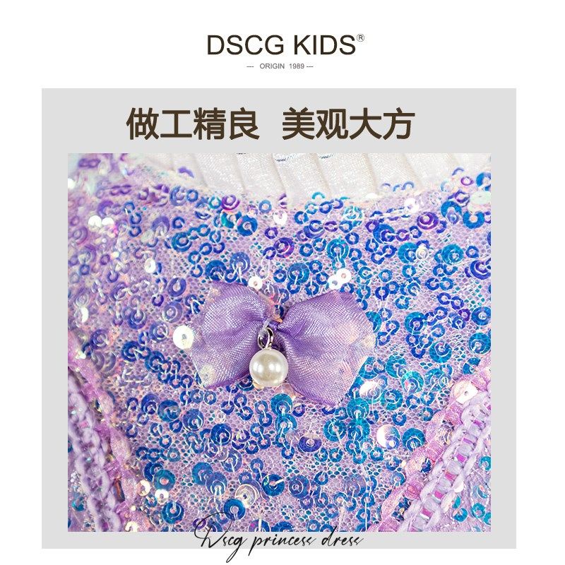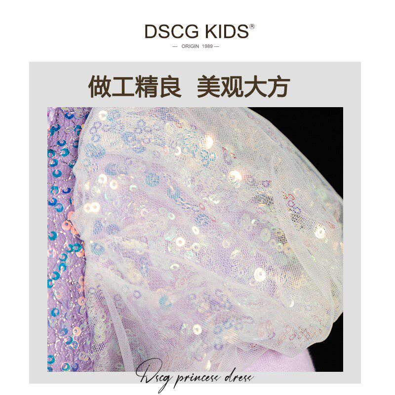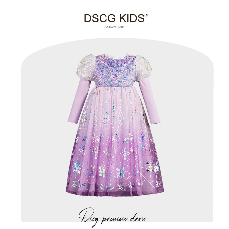 女童长发公主裙2025春秋新款紫色渐变高级感儿童生日礼服网纱裙子