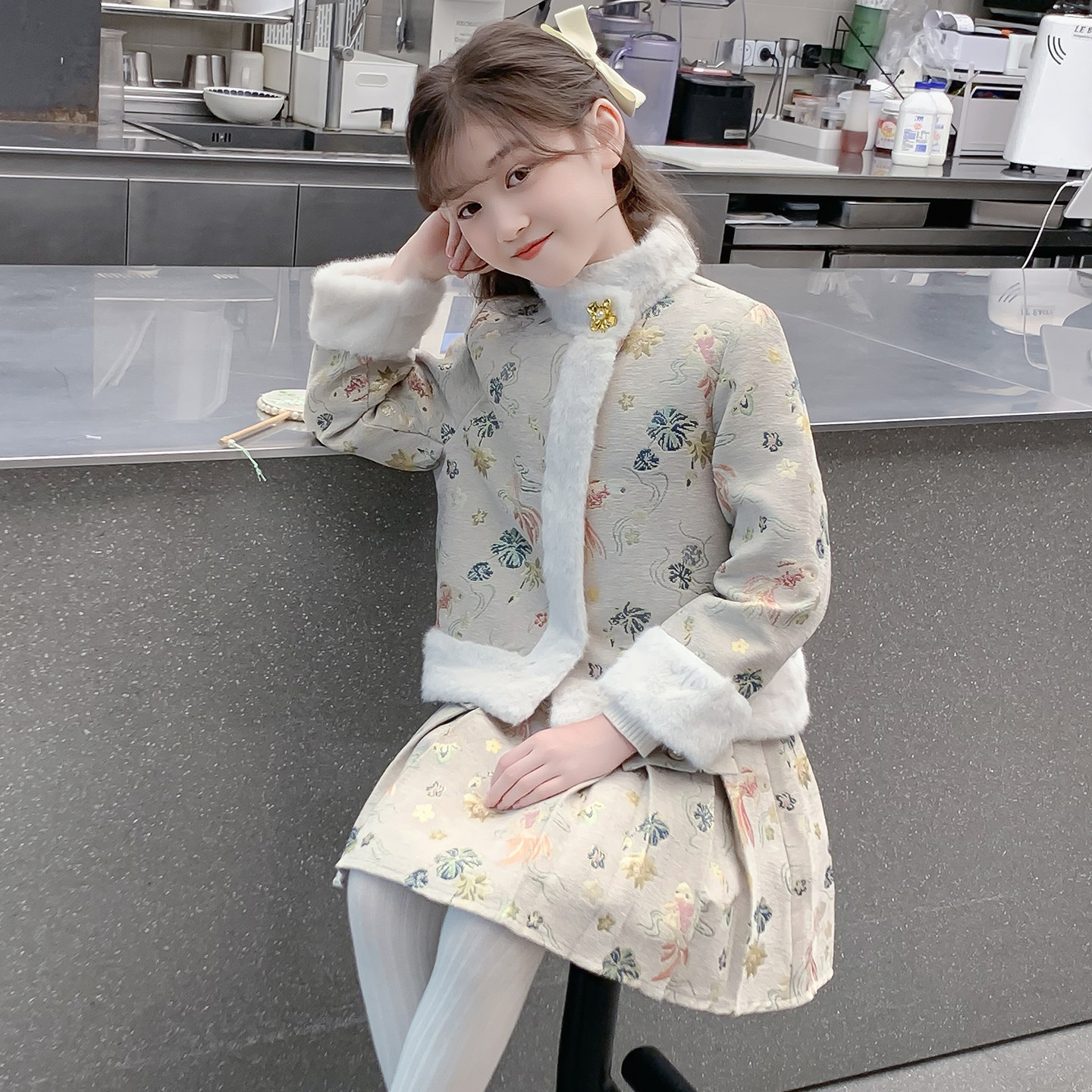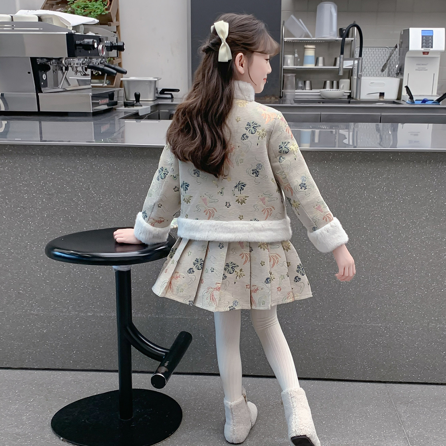 女童秋冬套装2026新款儿童洋气汉服国风加绒加厚女孩冬装两件套