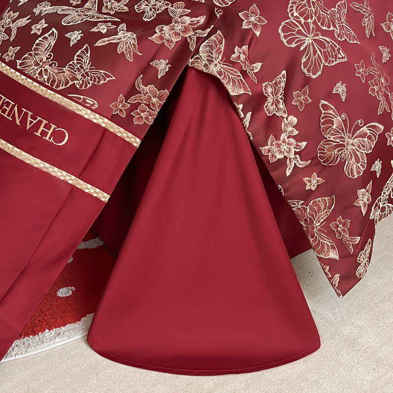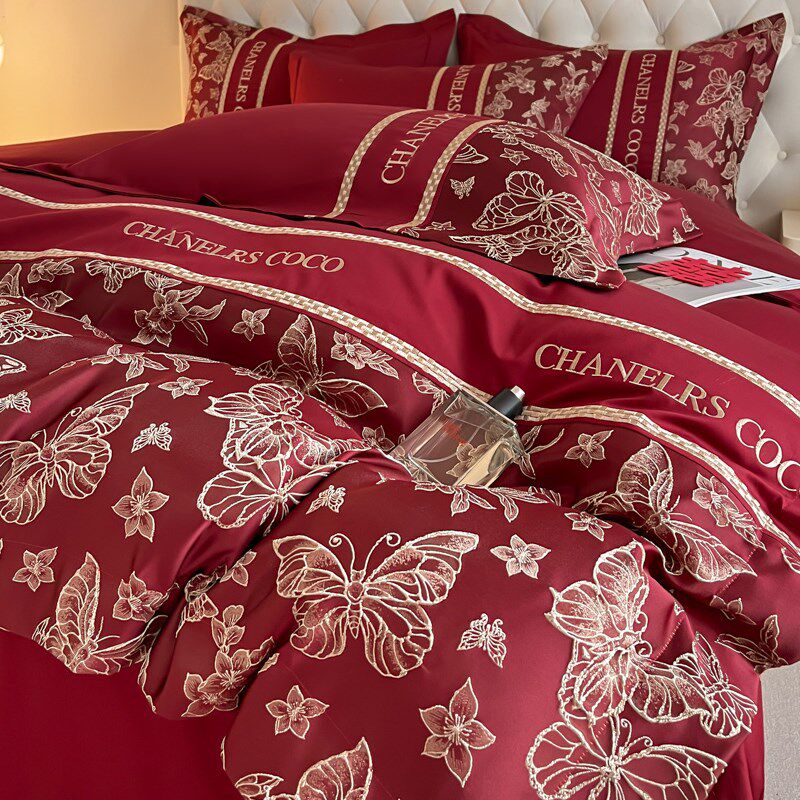 新中式结婚四件套酒红色纯棉被套被罩全棉床单陪嫁婚庆床品床笠款