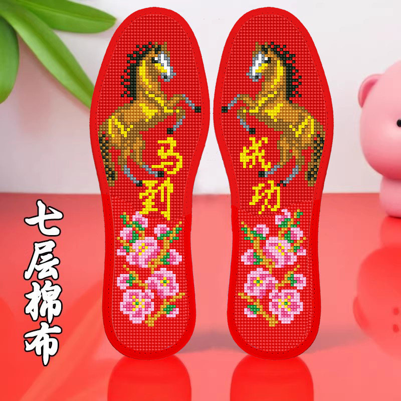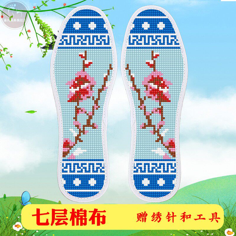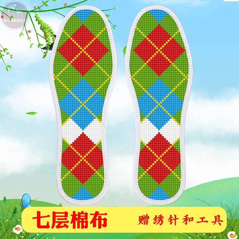 311线报网描述:带针线不褪色中格七层棉布十字绣鞋垫加厚