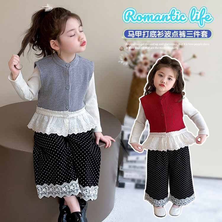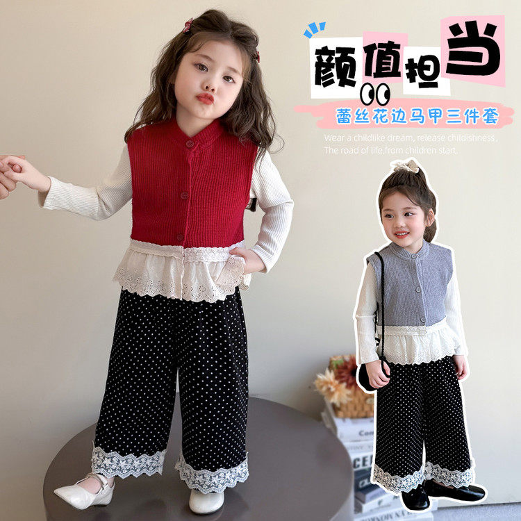 儿童针织马甲套装 2025 新款春秋季男女童洋气时髦网红宝宝