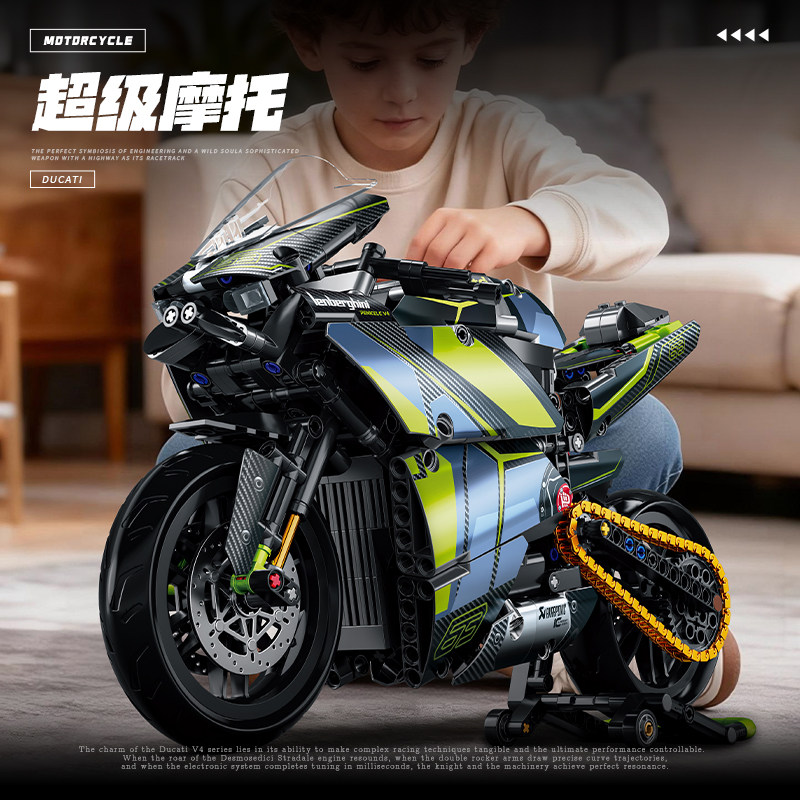 杜卡迪摩托车机械组积木拼装巨大型高难度男孩玩具模型礼物