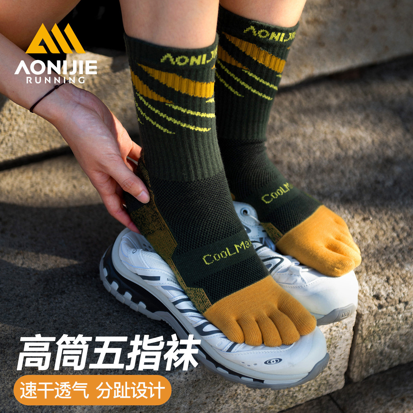 奥尼捷运动长筒五指袜专业越野跑步袜马拉松登山徒步速干分趾袜子