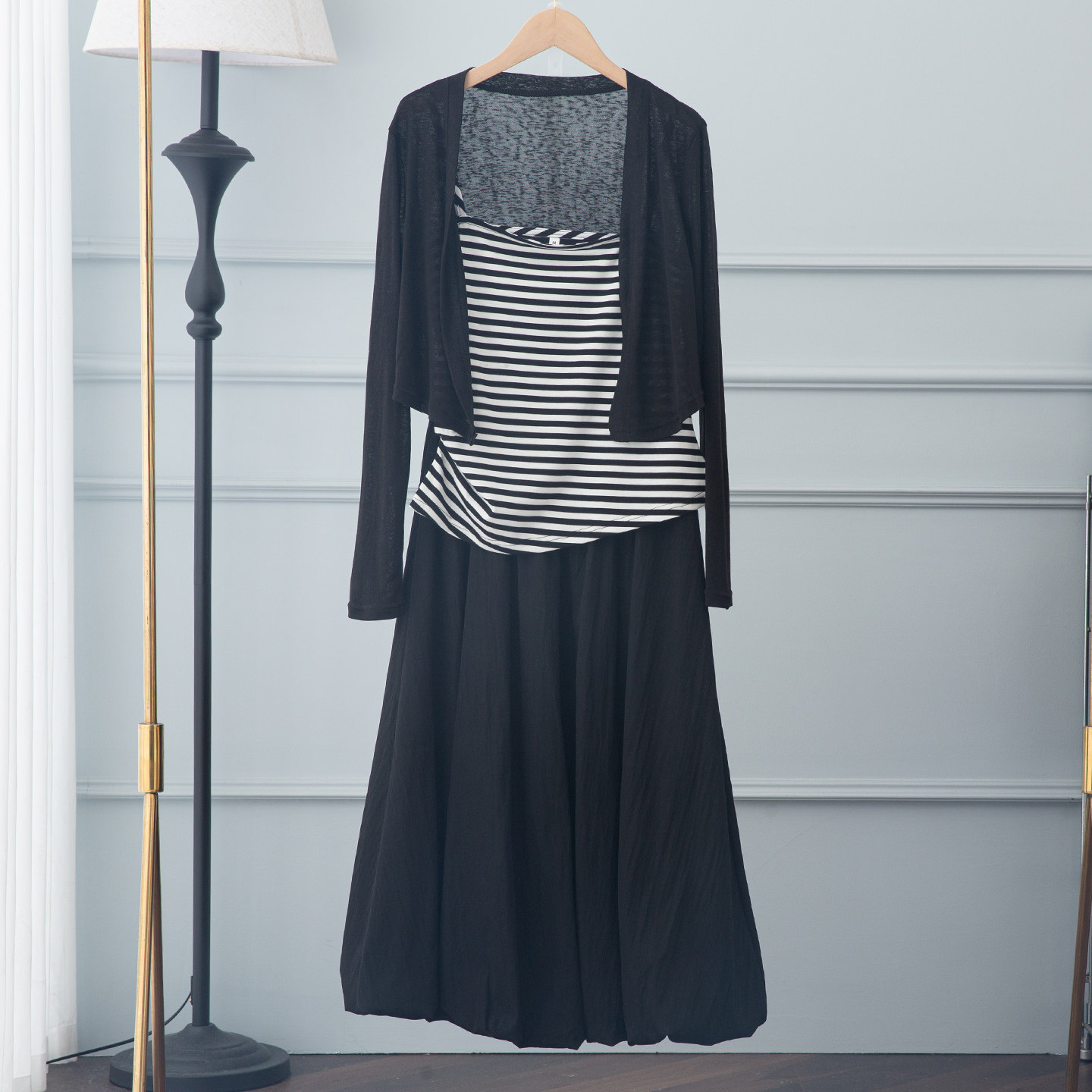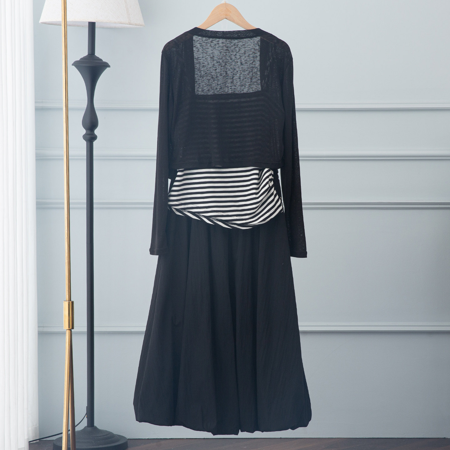 超火条纹吊带开衫花苞长裙三件套装女2026夏天新款流行穿搭一整套