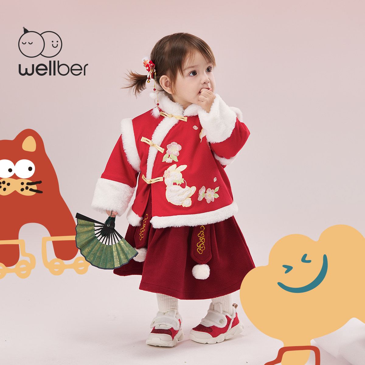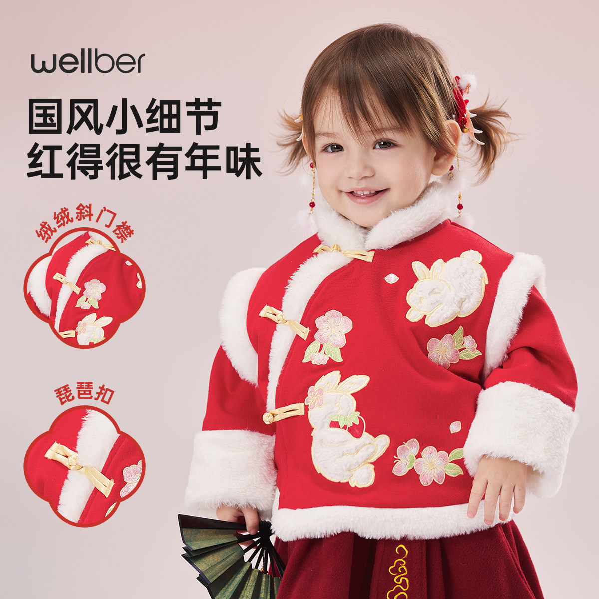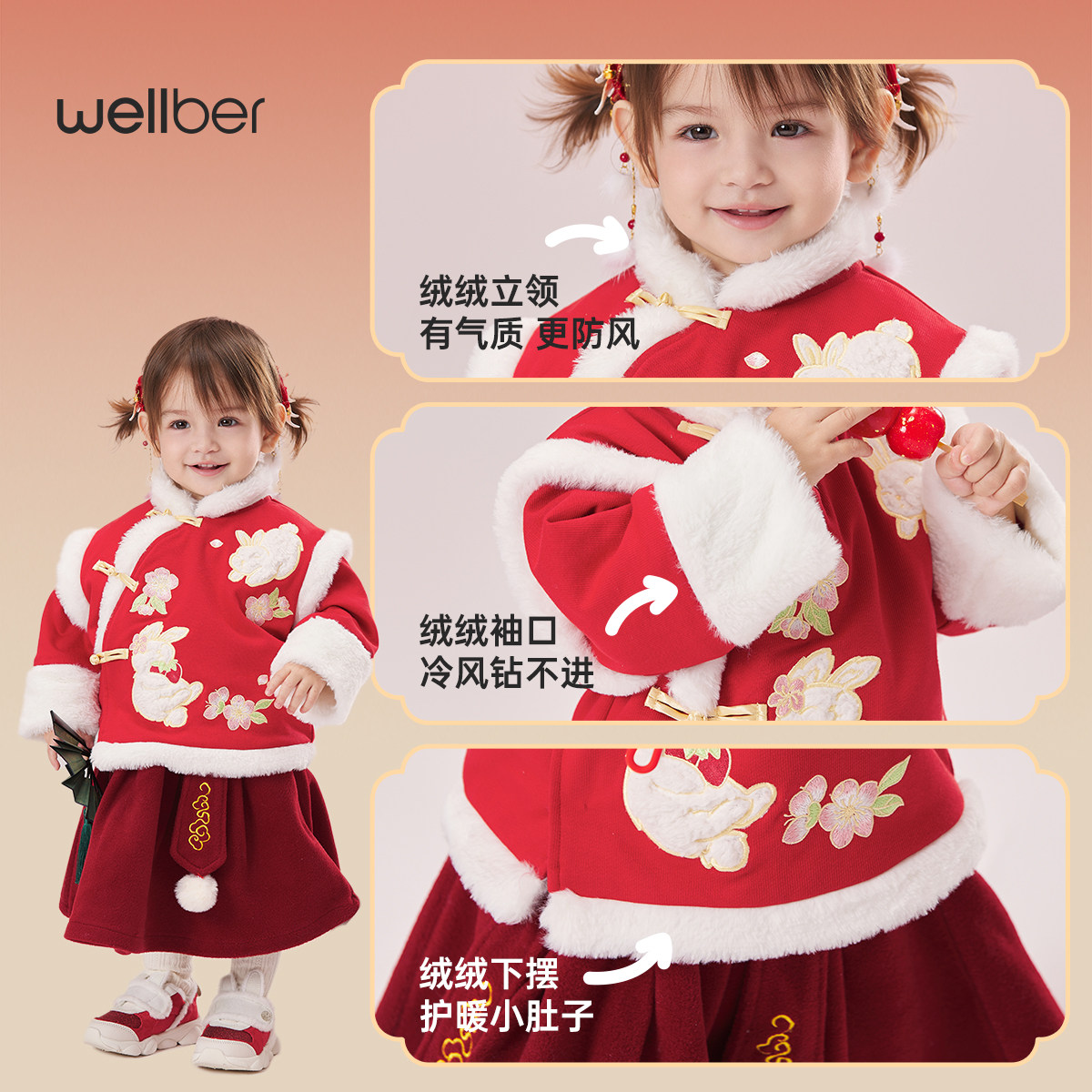 威尔贝鲁儿童外套冬季拜年服2026新款女童夹棉外套男童宝宝过年服