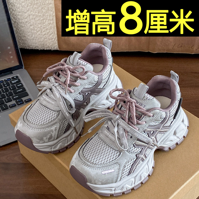 厚底老爹鞋女2026新款春夏季网面透气运动休闲鞋不累脚内增高女鞋