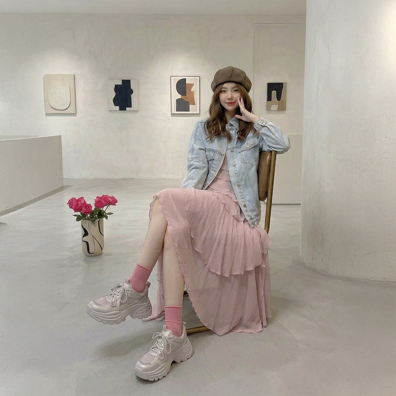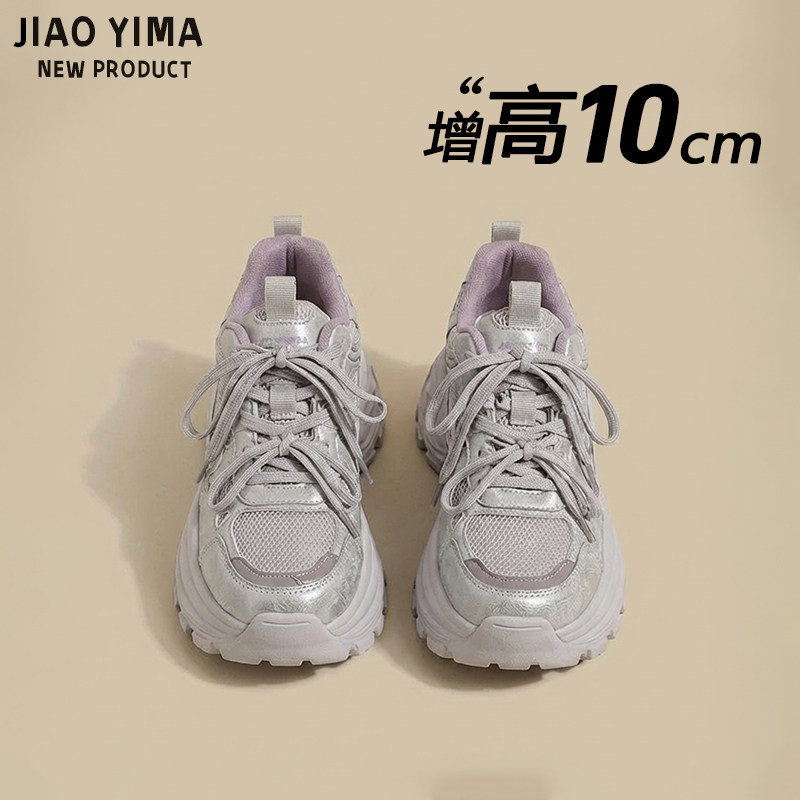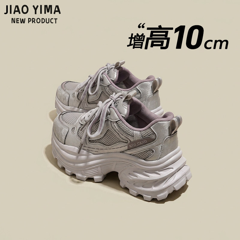 厚底网面老爹鞋女款2026新款春夏不累脚10cm内增高运动透气休闲鞋