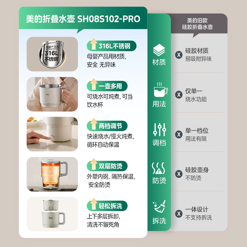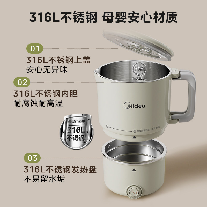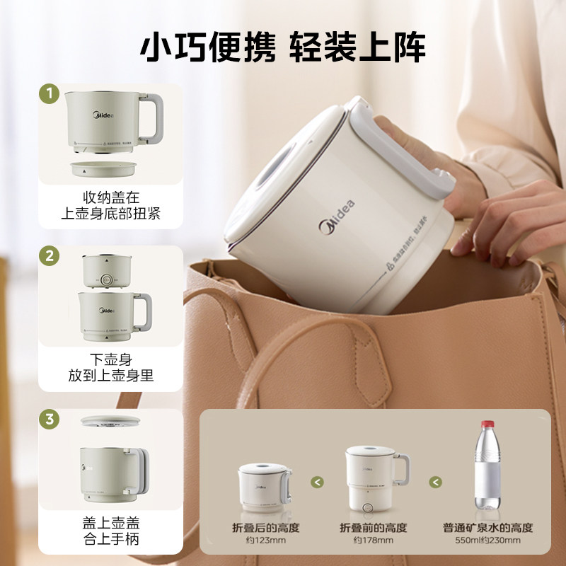美的电热水杯便携式烧水壶旅行户外折叠热水壶不锈钢恒温保温一体