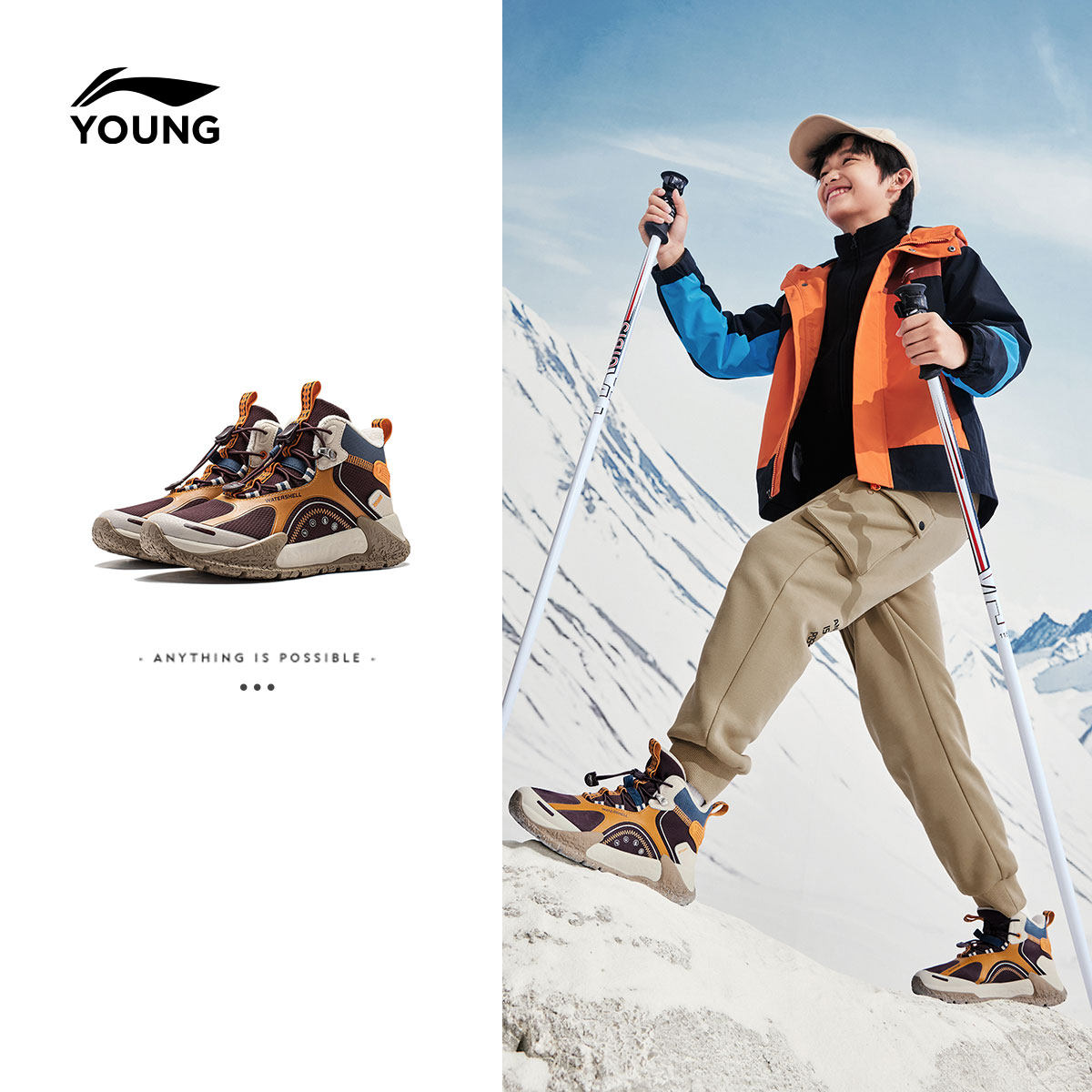 李宁儿童户外二棉鞋2024新款冬季男童鞋女中大童青少年保暖运动鞋