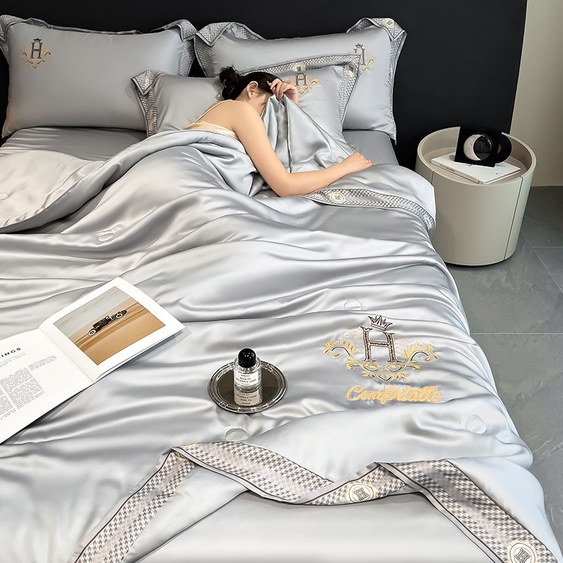 冰丝夏凉被单人空调被四件套可机洗双人夏被轻奢高级感夏天薄被
