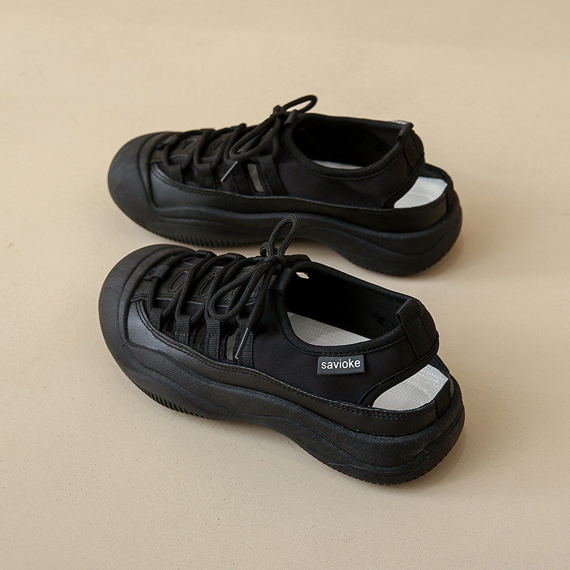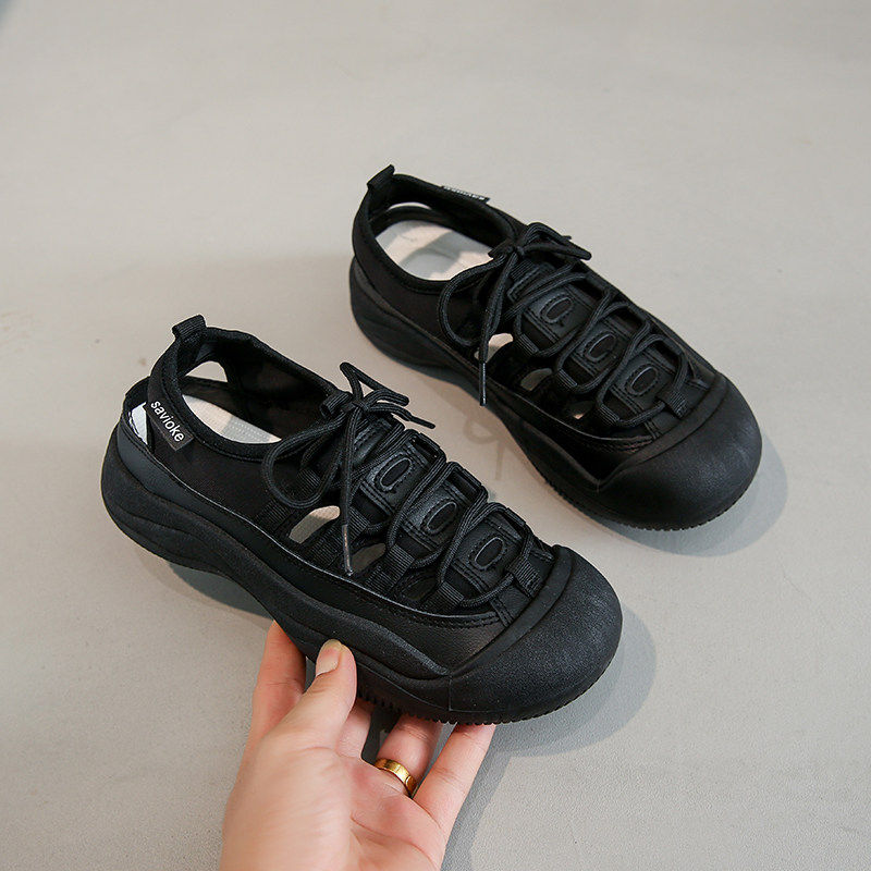 休闲鞋女夏季镂空透气外穿凉鞋软底不累脚工作鞋黑色防滑厨房鞋子