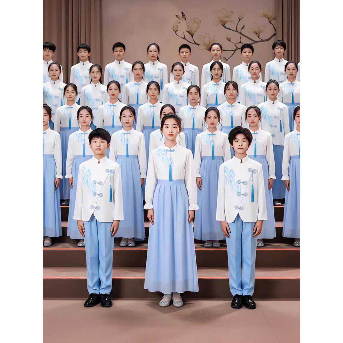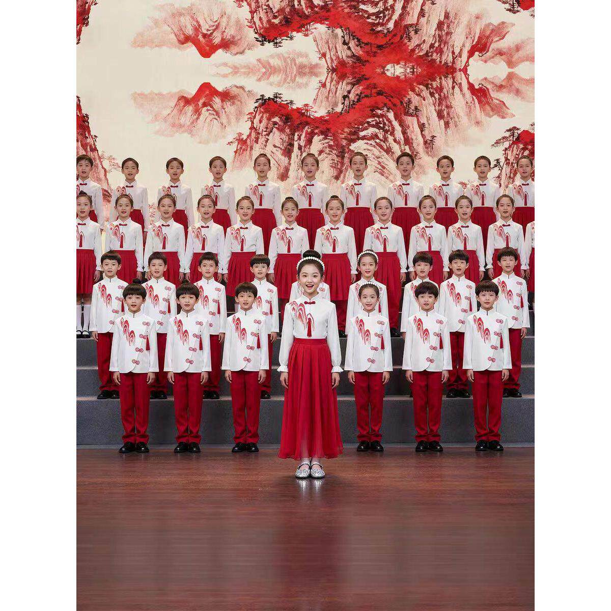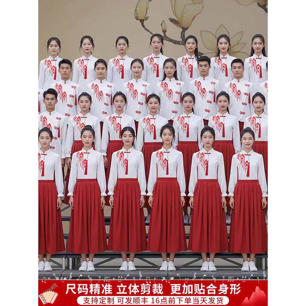 儿童合唱朗诵演出服演讲比赛服装女童中小学生中国风爱国红色诗歌