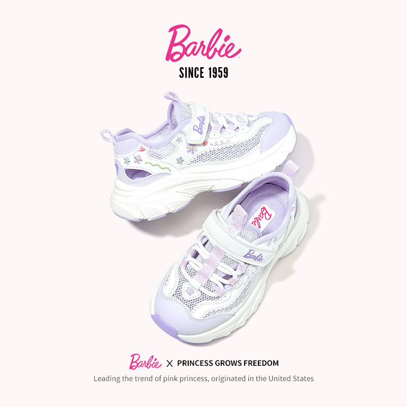 芭比童鞋女童运动鞋2026新款春夏软底透气网面鞋儿童公主休闲鞋子