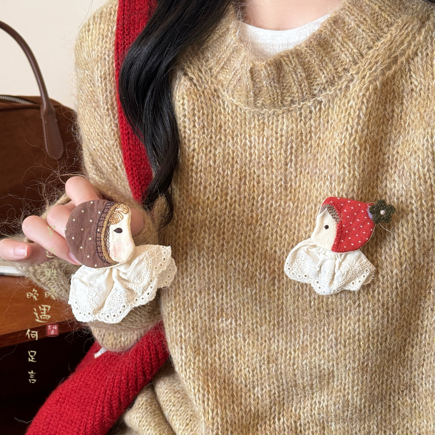 胸间童话~可爱布艺小女孩胸针女款2026新款配大衣毛衣固定扣别针