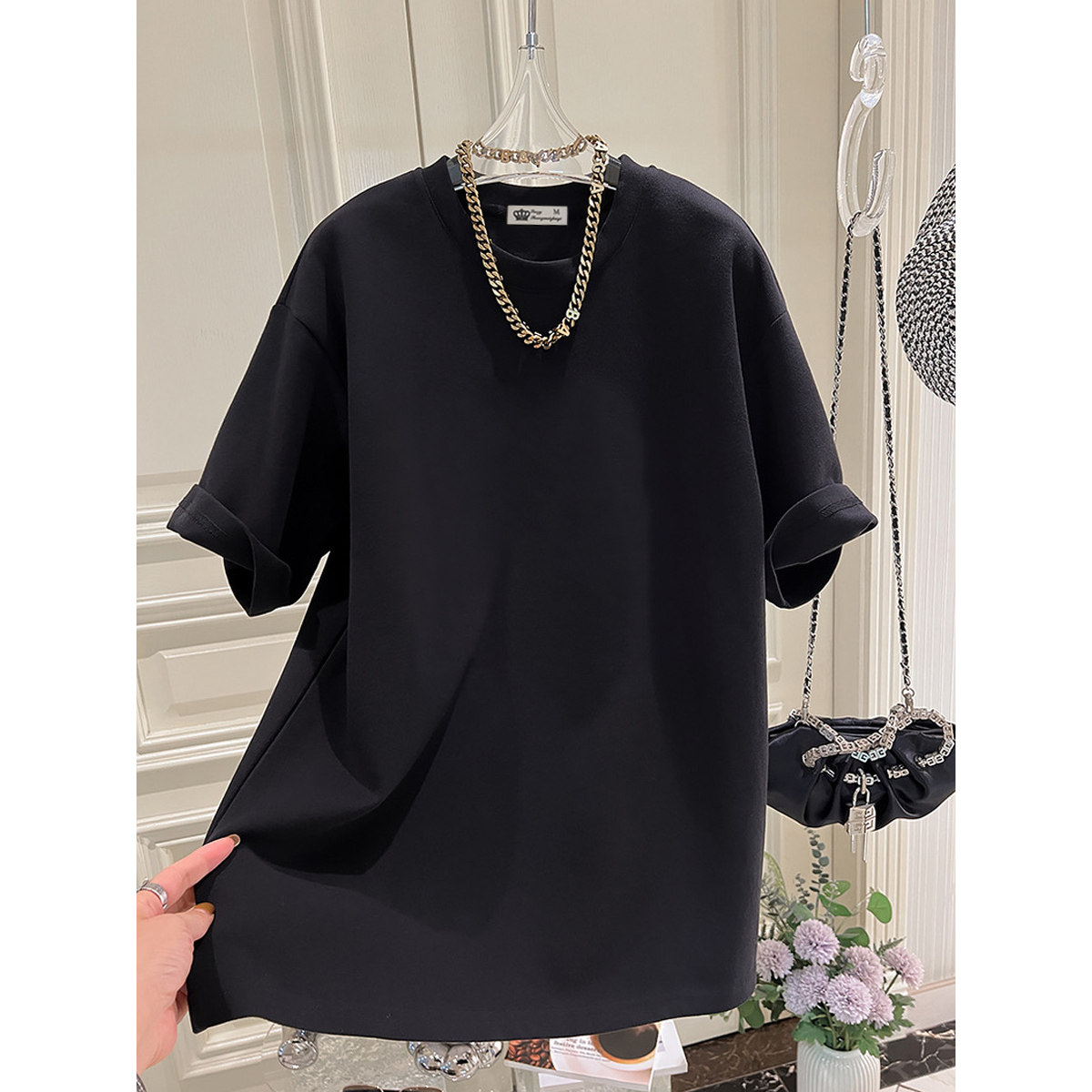 短袖T恤女2026年新款春夏季休闲小众宽松显瘦设计感中长款上衣潮