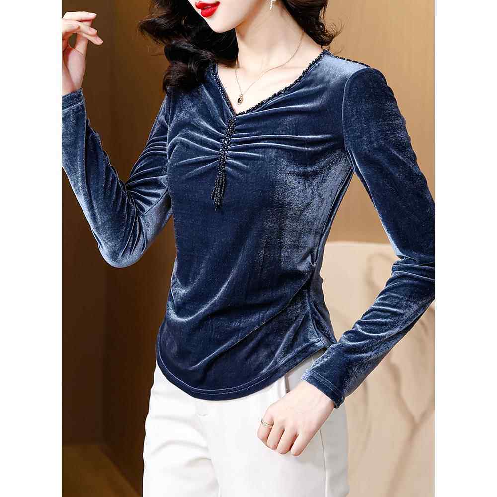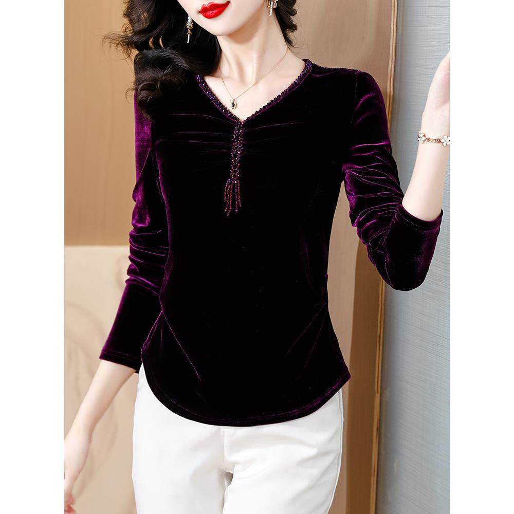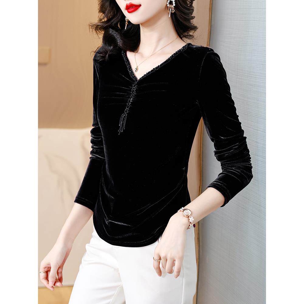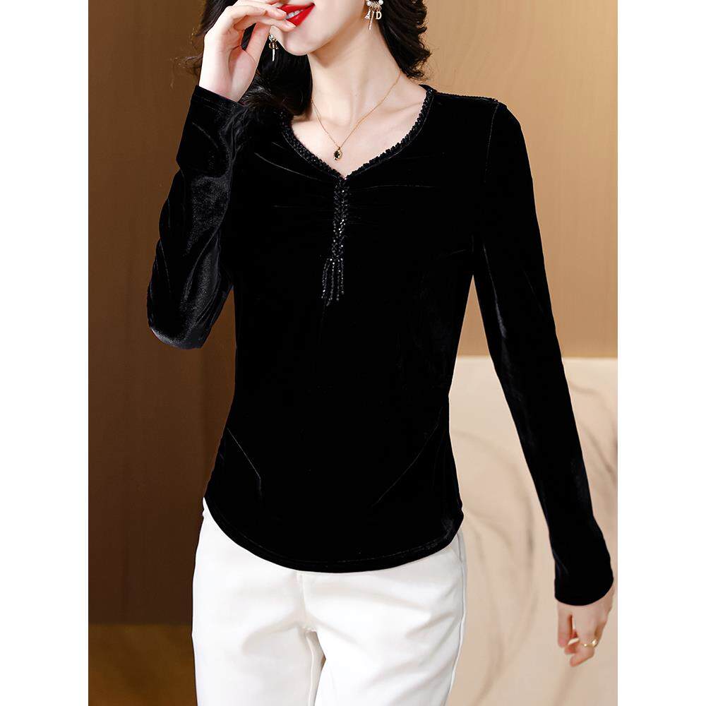 金丝绒加绒加厚v领打底衫女士内搭可外穿高级感爆款洋气黑色上衣