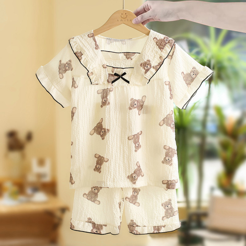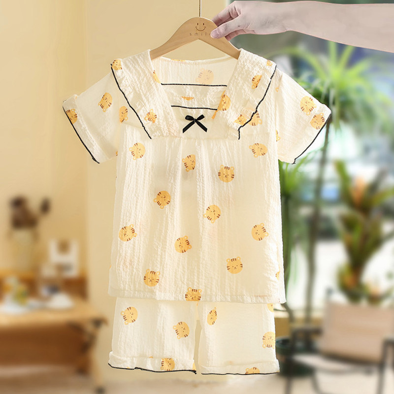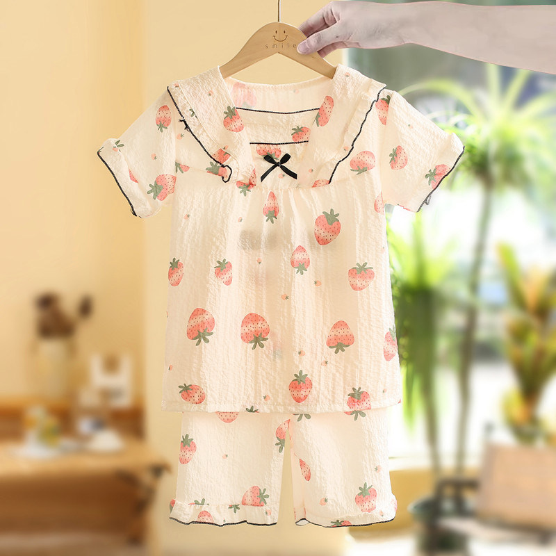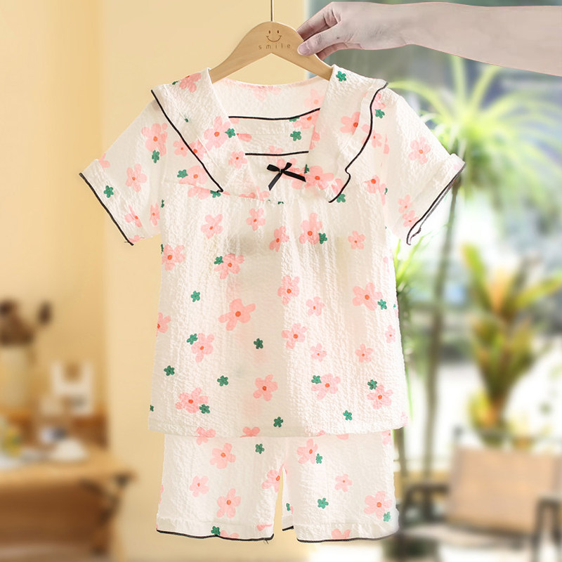 2026新款女童睡衣夏季款纯棉薄款儿童女孩短袖套装大童夏天家居服