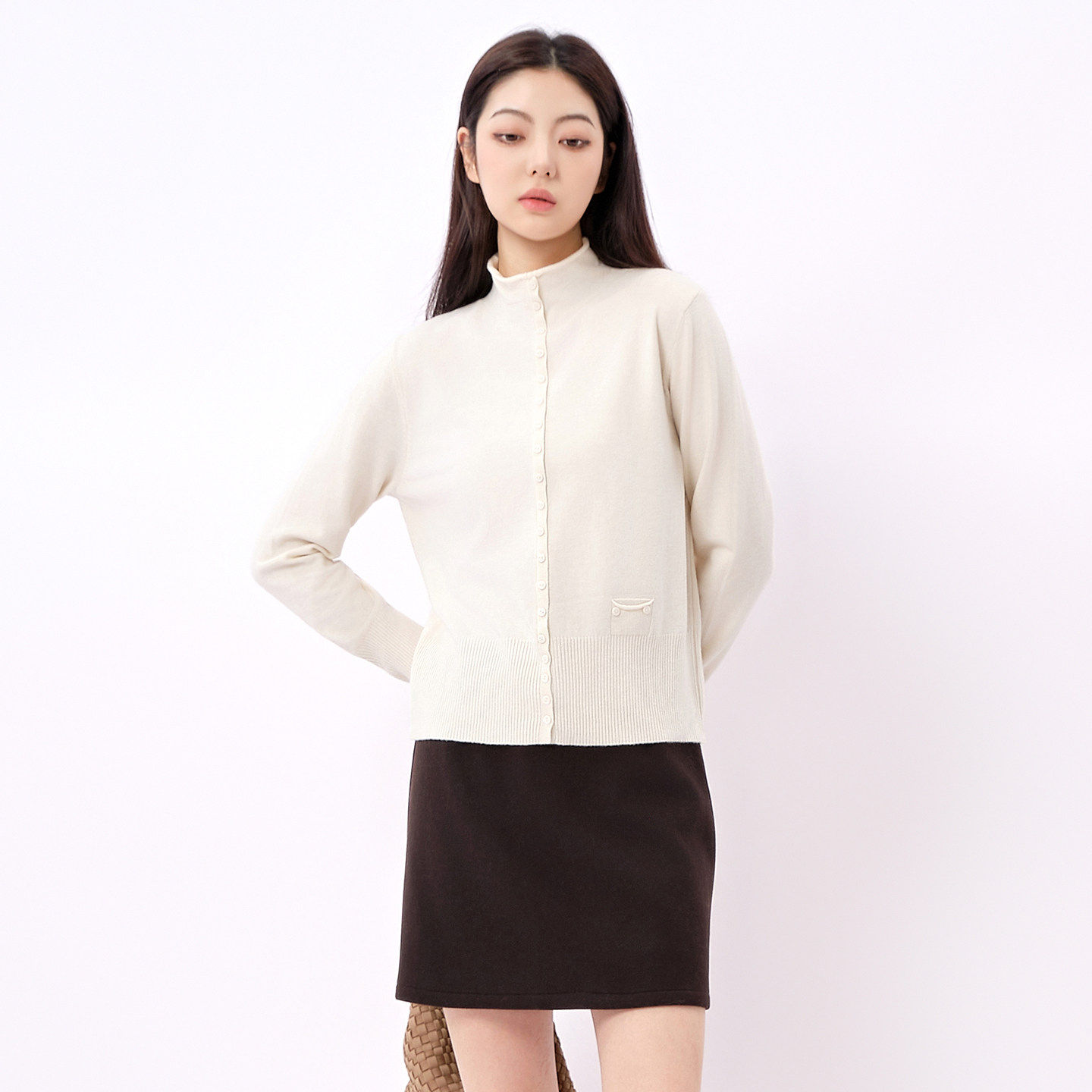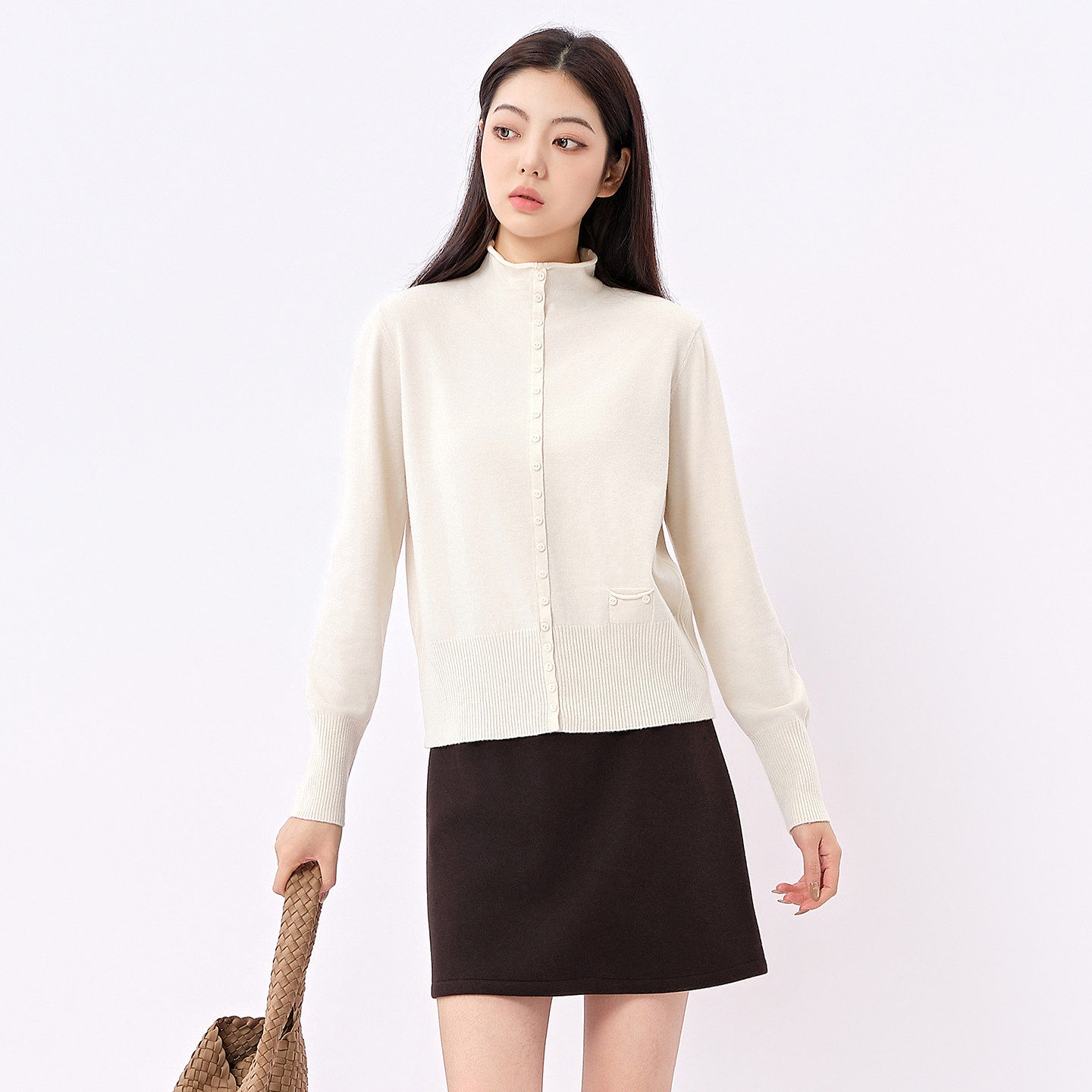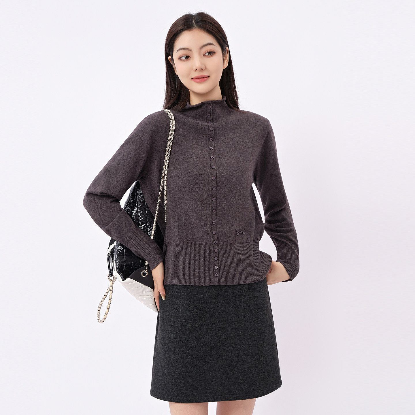 芭依璐2026早春新款立领单排扣木耳边针织开衫百搭显瘦毛衣外套女
